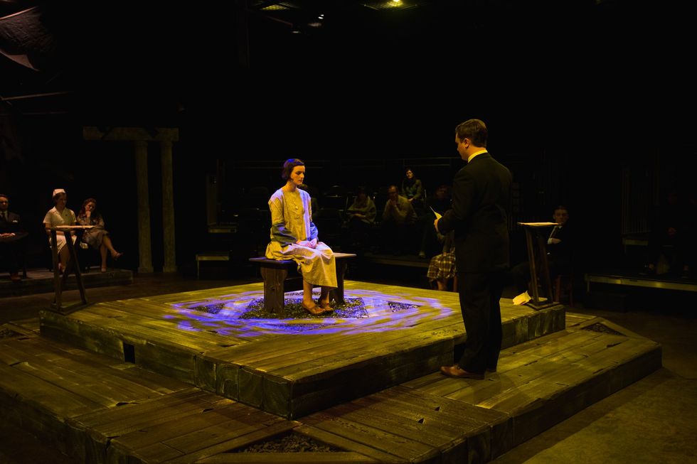 The majority of the second act focuses on the trial, where two educated and smooth-talking lawyers argue either for Carrie’s sterilization or for her continued retention at the Colony, a home for the “feeble-minded” that Carrie was forced into when she had an unplanned pregnancy. I felt helpless as I watched these two men debate which dehumanizing future Carrie should be forced into: whether she was to be sterilized, never to have children again, or whether she was to remained locked-up in the Colony.