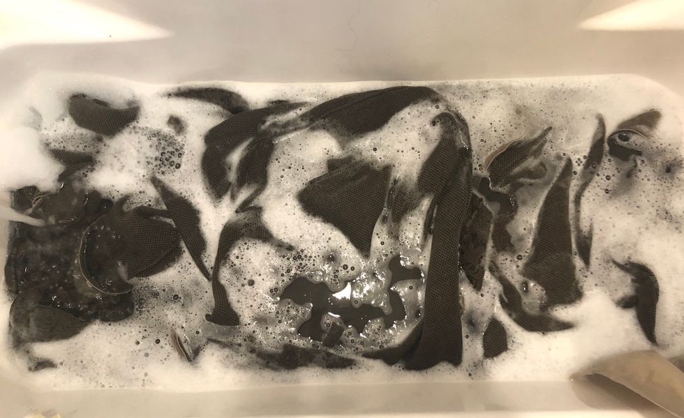 Here is the aftermath of what my tub looked like after I soaked the cushions for four hours.