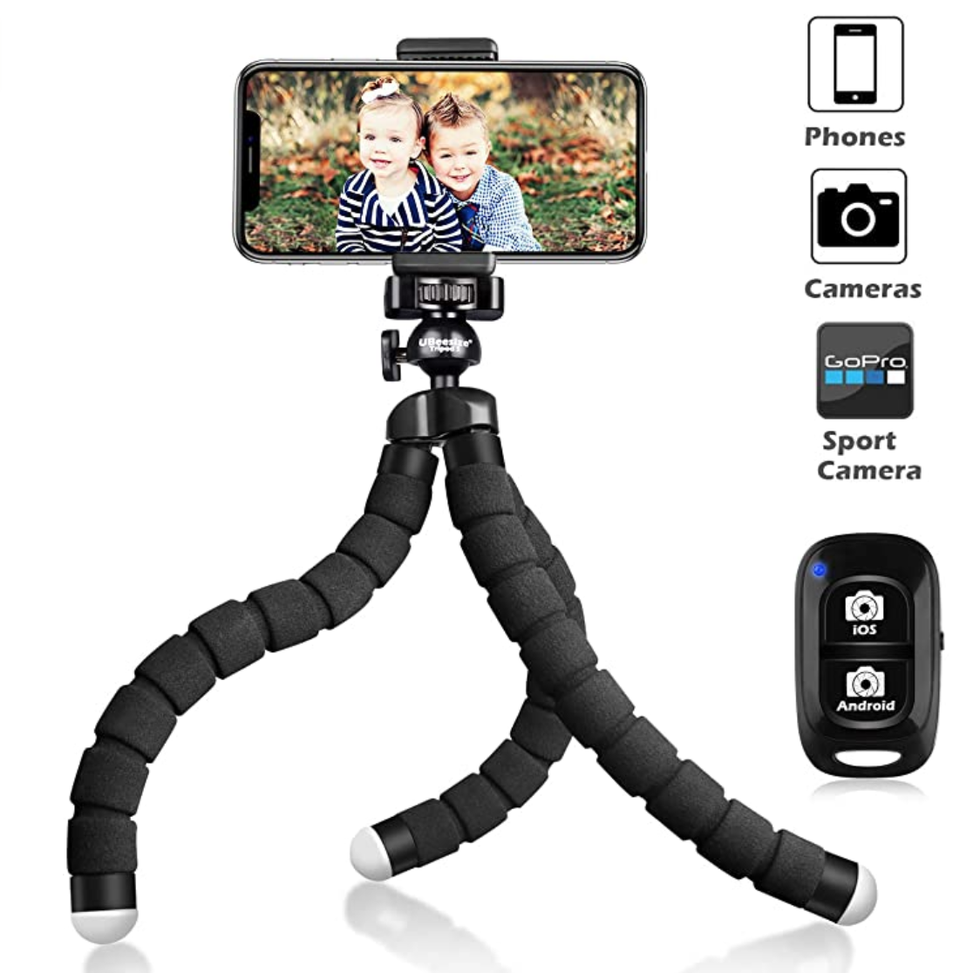 This thing is amazing. It's a table-top tripod. It's a selfie stick. It will wrap around and attach your phone to almost anything.