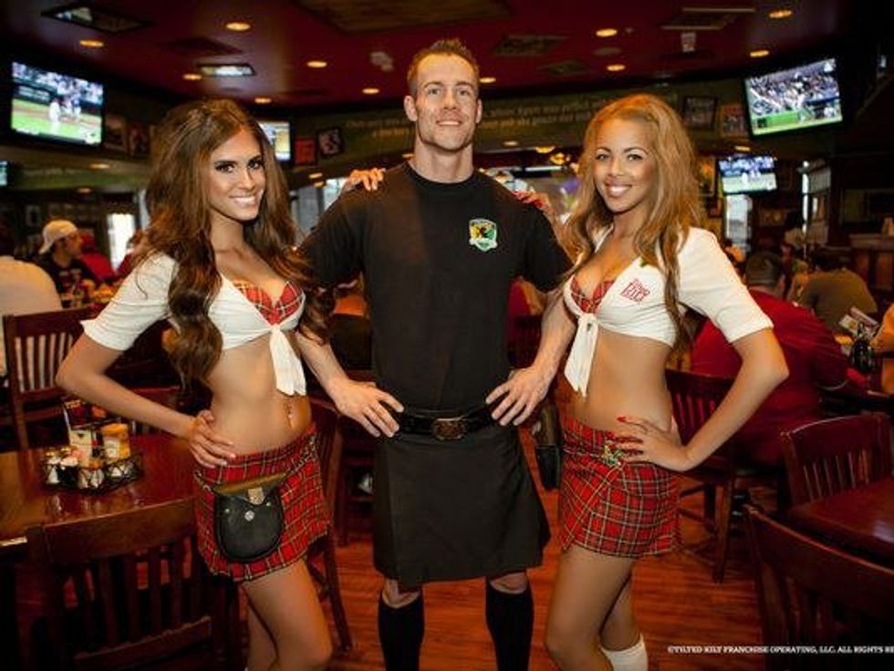 Toward the end of my freshman year, I secured a job at a restaurant. Nothing too exciting on the surface, the is a common phenomenon with many of my peers. Restaurants usually offer a higher pay rate than hourly jobs, cash in hand at the end of the night, and the good nights can offer $100 or more in a single shift. For a struggling college student, this is not only a nice perk, it is necessary for survival. So I pursued a job at Tilted Kilt. For those unfamiliar with the restaurant, Tilted Kilt is a contemporary Celtic-themed sports bar founded in Las Vegas, Nevada in 2003. Currently, there are 107 locations and more in the development stage. Tilted Kilt is a "breastaurant," a term used for restaurants that feature skimpily-dressed female waiting staff. The outfit featured at Tilted Kilt consists of a red tartan plaid bra with a white short sleeve shirt with the ends knotted and laid across the midriff. Additionally, females wear a short red tartan kilt and white stockings with red flashings on each leg, with black Mary-Jane style shoes. Males are also required to wear a thematic uniform. Their uniform (or rather mine) is a black TK shirt, with a Black Kilt, black belt, Black half-boots, black stockings with green flashings on each leg. It takes some time getting used to, but it is quickly embraced by all who don it and wear it proudly while serving.