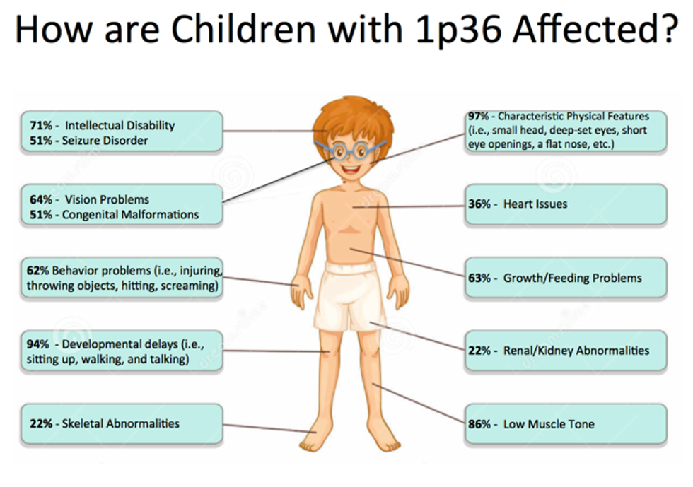 ◦ Intellectual Disability: Some children with 1p36 Deletion Syndrome are fortunate enough to be able to go about their day not needing assistance with their day and other children are not verbal and require a constant care.