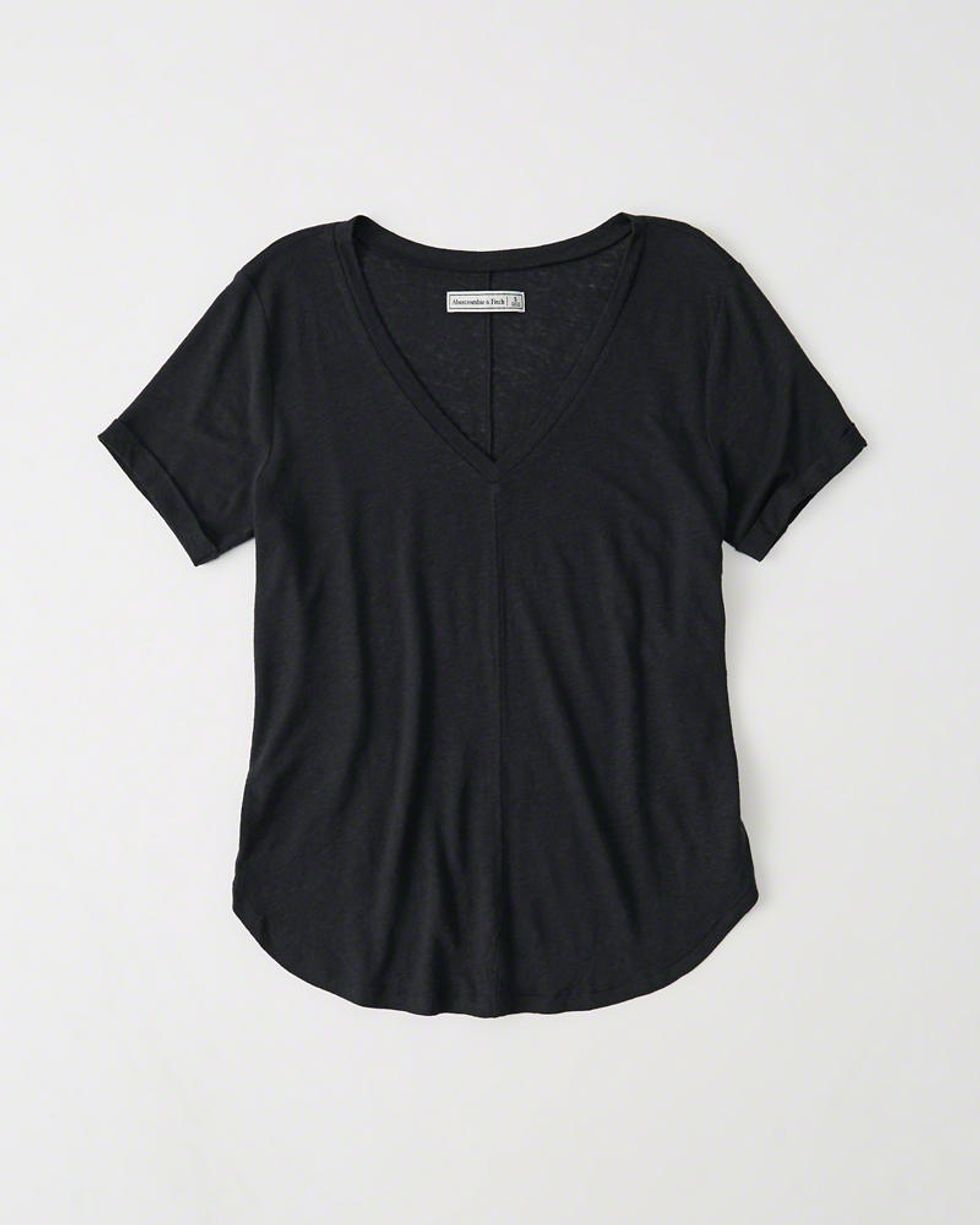 As easily as black can be seen as formal, it can also be seen as comfortable, cute, and laid back. Take this v-neck for instance - it's simple, but can be paired with so many different things. Whether you want to wear colorful shorts, a short skirt, jeans, or anything really, this tee will match with anything. Yes, you could say that white v-neck's can match with anything too, but the plus side with black is that sweat stains can't be seen, if you spill something on your shirt during the day - it's not as noticable, and it won't be see through like other brighter colors.
