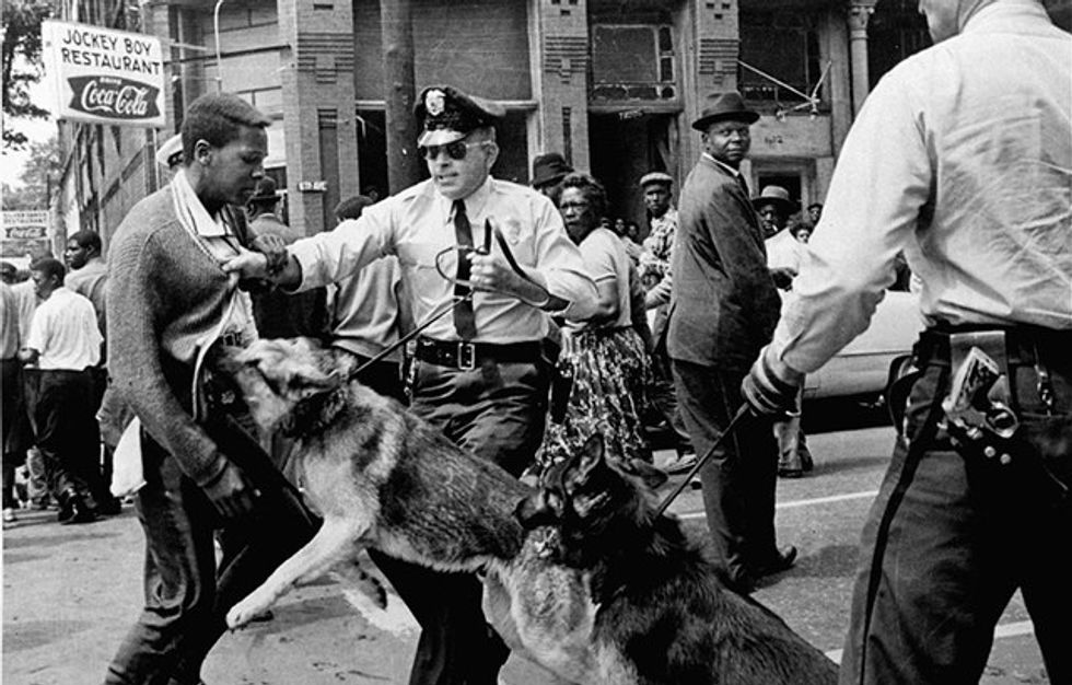 The protests were nonviolent until the police set dogs and tear gas on the people. Furthermore, the negroes were barred from the court systems and couldn't even vote.