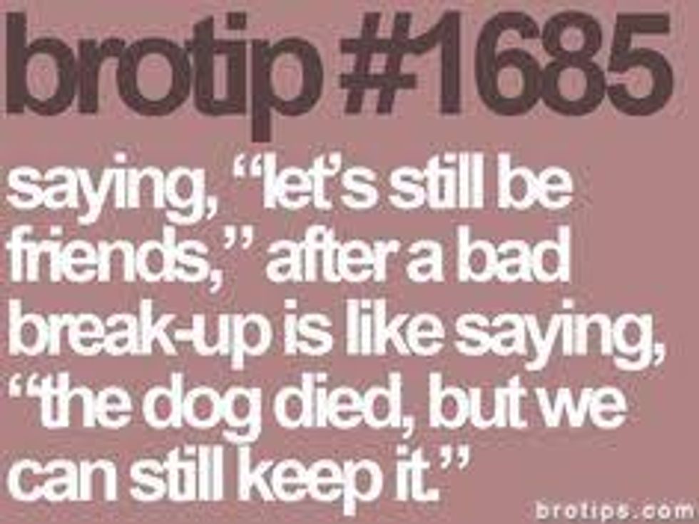Some couples are able to make it work and still be friends after a breakup most of the time it either doesn't work up or you end up getting back together and be miserable again. It's safer to just break up and be civil with each other than to try to be best friends again.