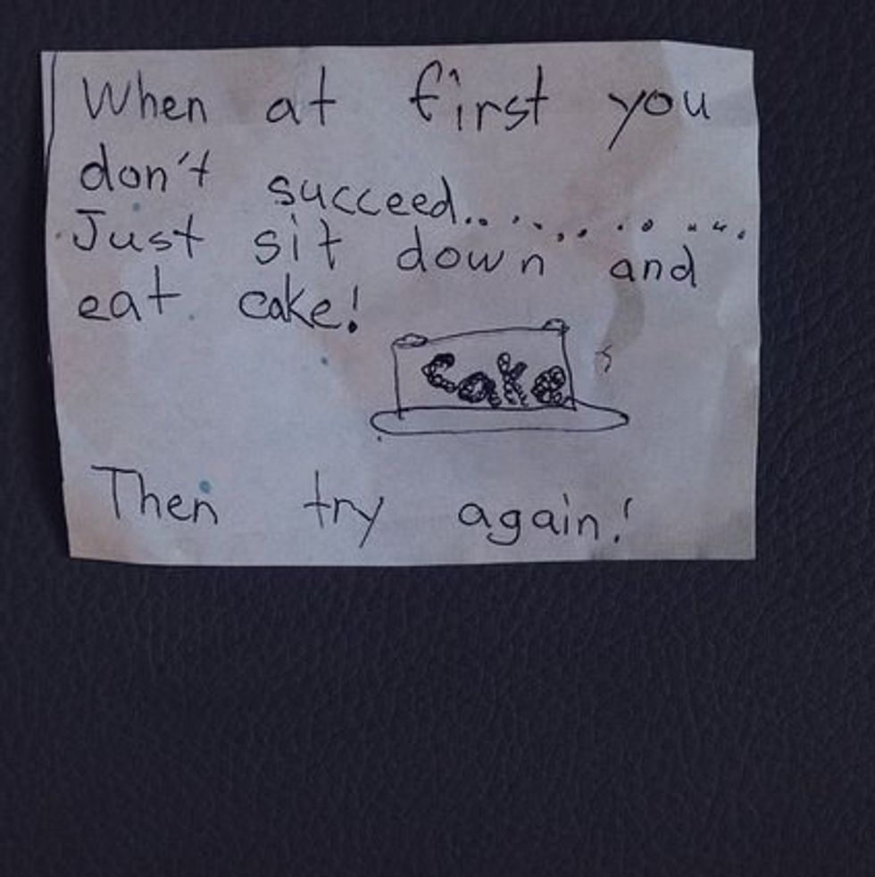 5. "When at first you don't succeed... Just sit down and eat cake! Then Try again!"