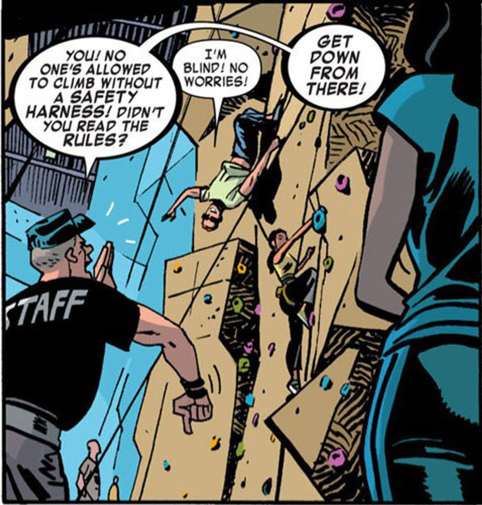 6. Blind lawyer Matt Murdock (Daredevil) trolling the rock-climbing wall staff