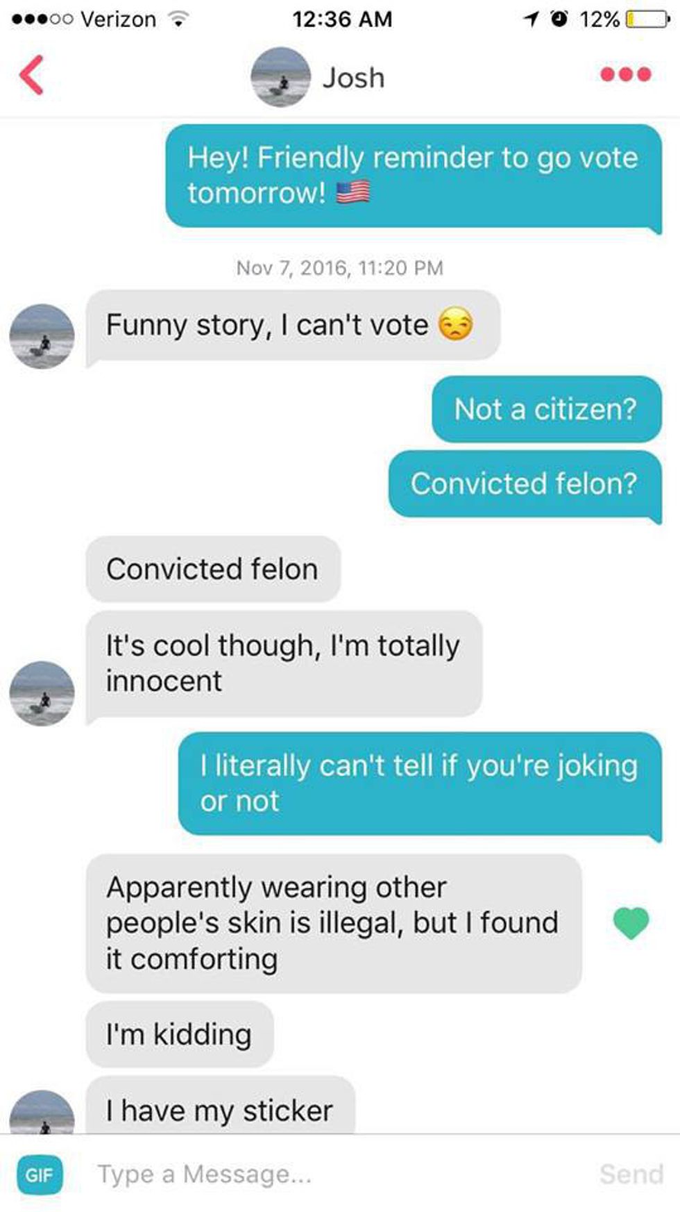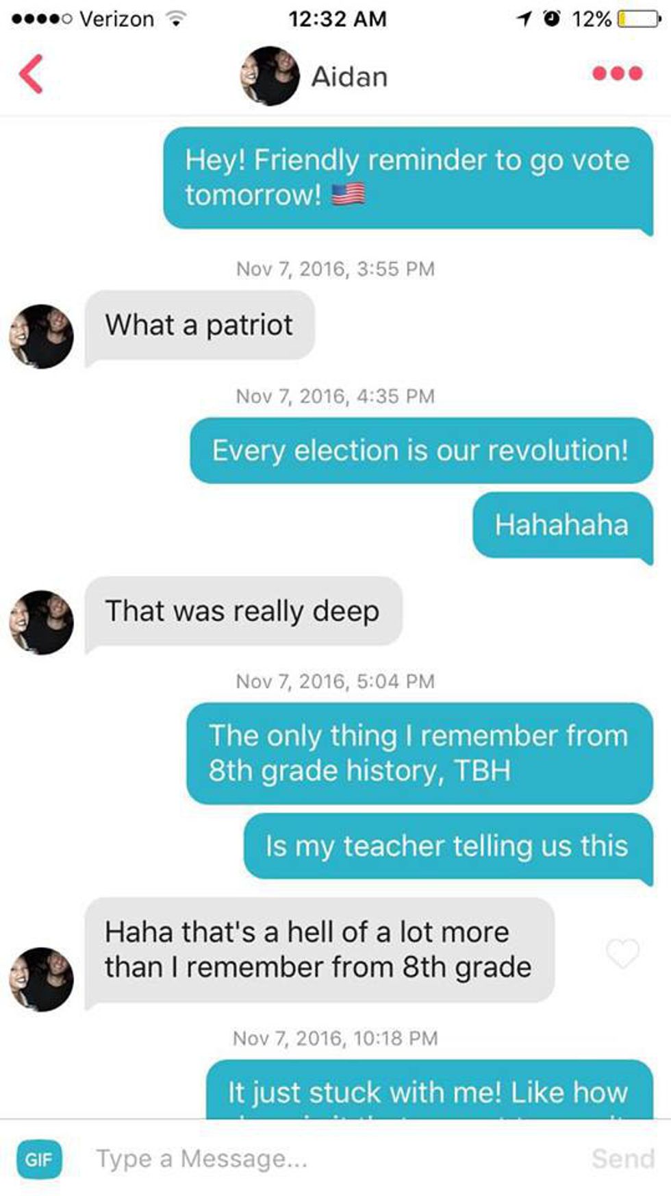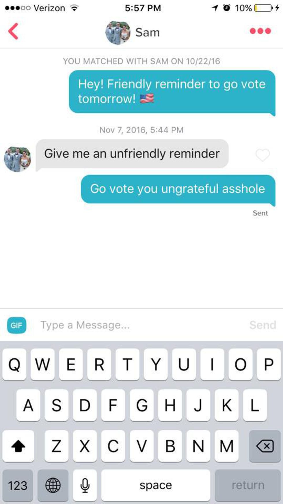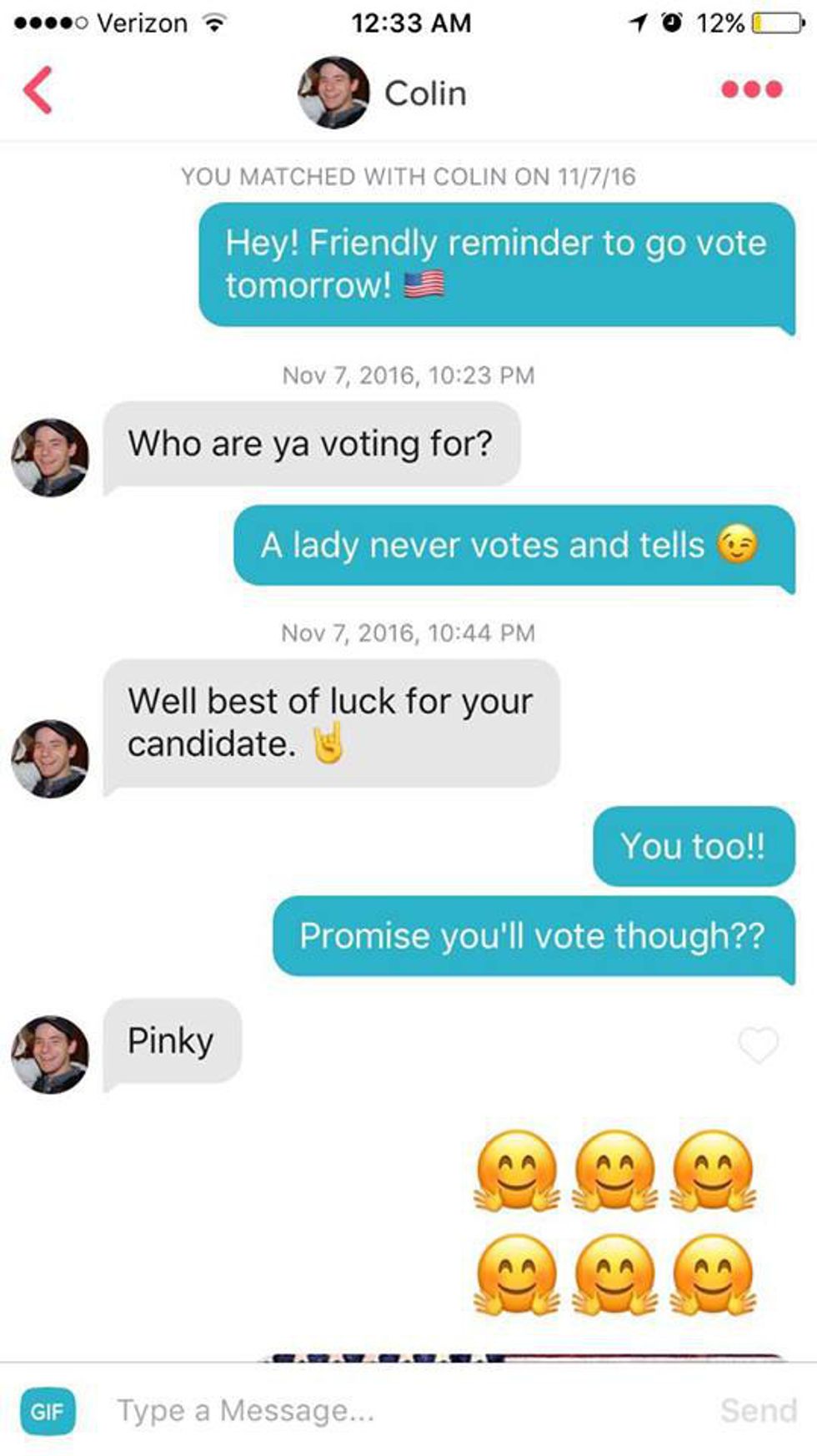 Then, she began messaging every single guy she had ever matched with — all 247 of them — with a reminder to go vote in the presidential election. The reactions varied.