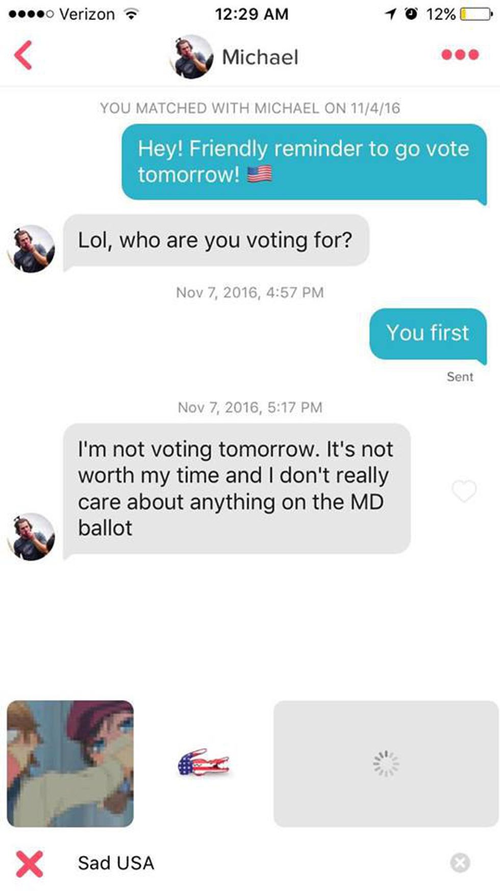 "Remember to vote, y'all 🇺🇸🇺🇸🇺🇸" and, "Show me your 'I voted' sticker/you at the polls and we can go on a date," her profile bio read.