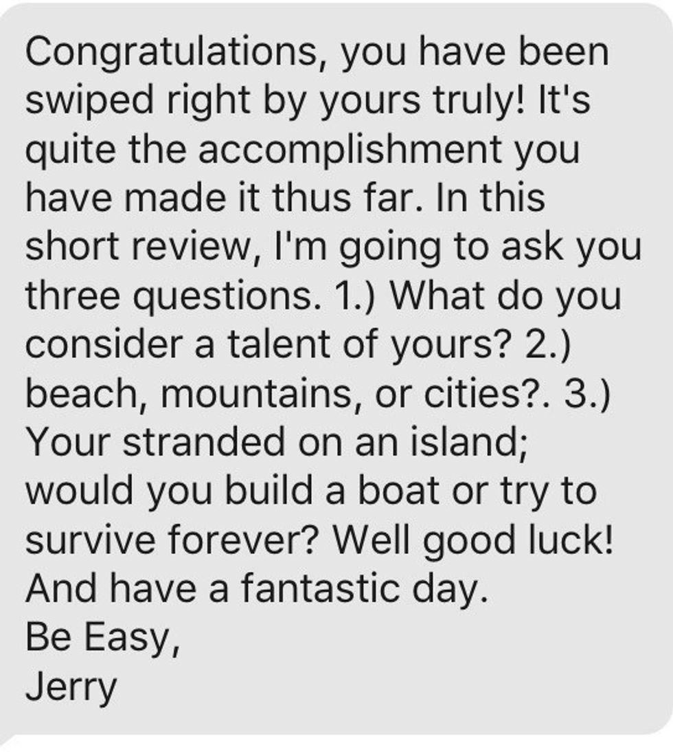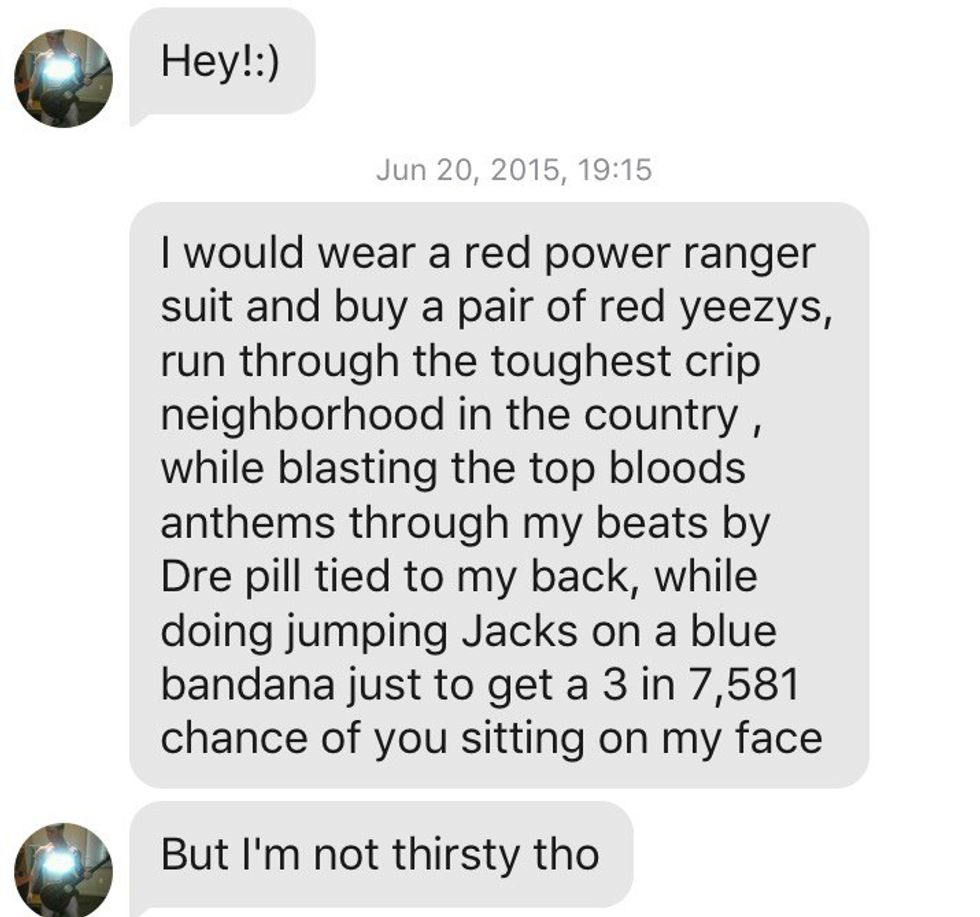 Out of a lack of inspiration for this post, I re-downloaded Tinder. All my matches came flooding back, with our messages, as if never deleted. Odds are, out of 996 matches, there are probably at least two or three guys in there I could really hit it off with. But since hitting it off with someone isn't interesting, I tried counting how many have an animal in their main picture, like a puppy or a monkey -- which would be my reason for swiping right. My ADD got me counting to (almost) double digits before calling it quits. Thus, I've decided to share with you the breeds of Tinder men, as experienced in the wild. Do not be fooled -- the exact same breeds lurk amongst us every day, typing such messages in your calculus class, or in line at the grocery store. Enjoy, be inspired, and keep swiping right in hopes of finding your soulmate in the palm of your hand on a screen (or, at the least, temporary amusement).