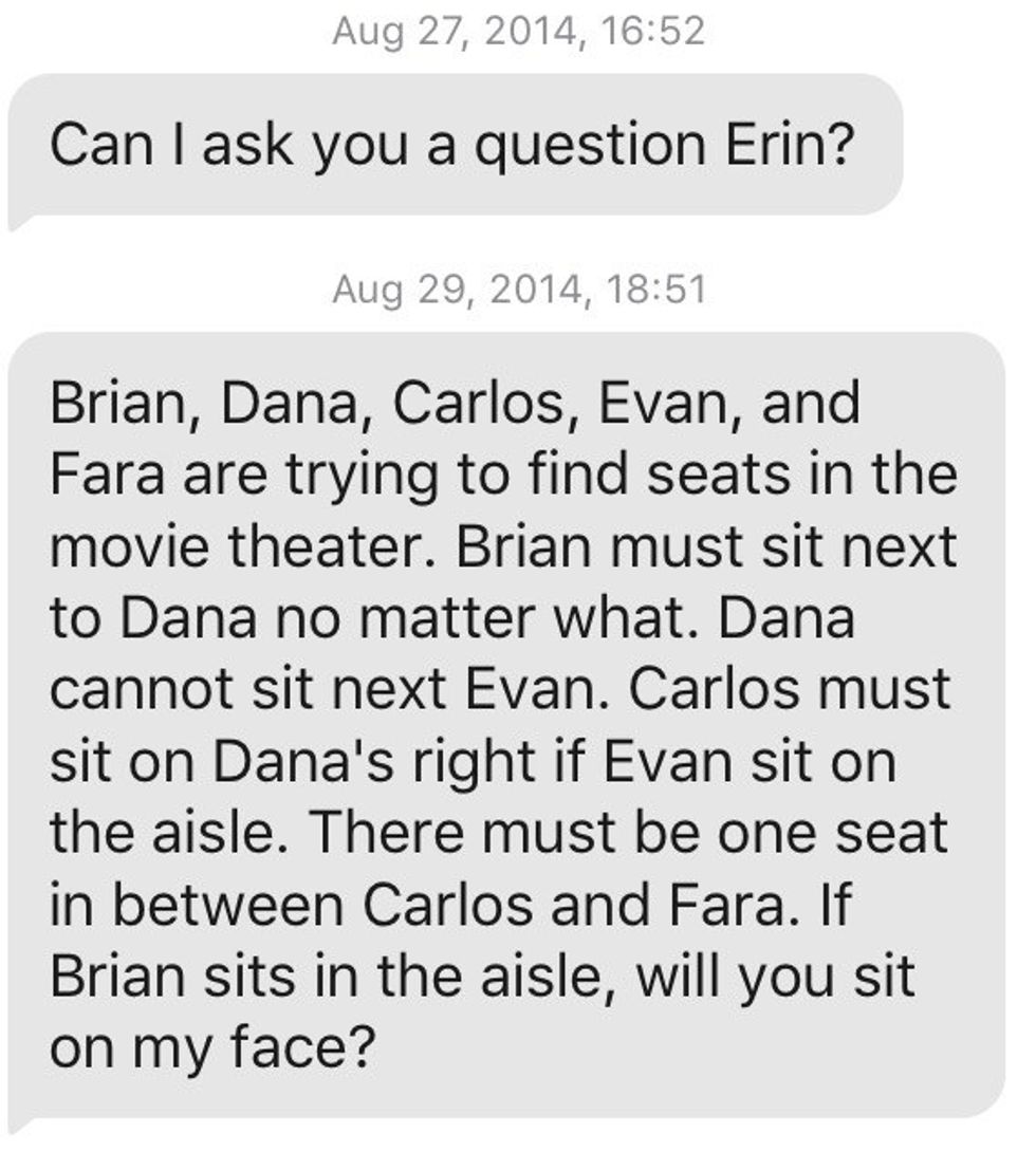 I'm a psychology major, which means I'm the one asking the questions here. This is not one of them.