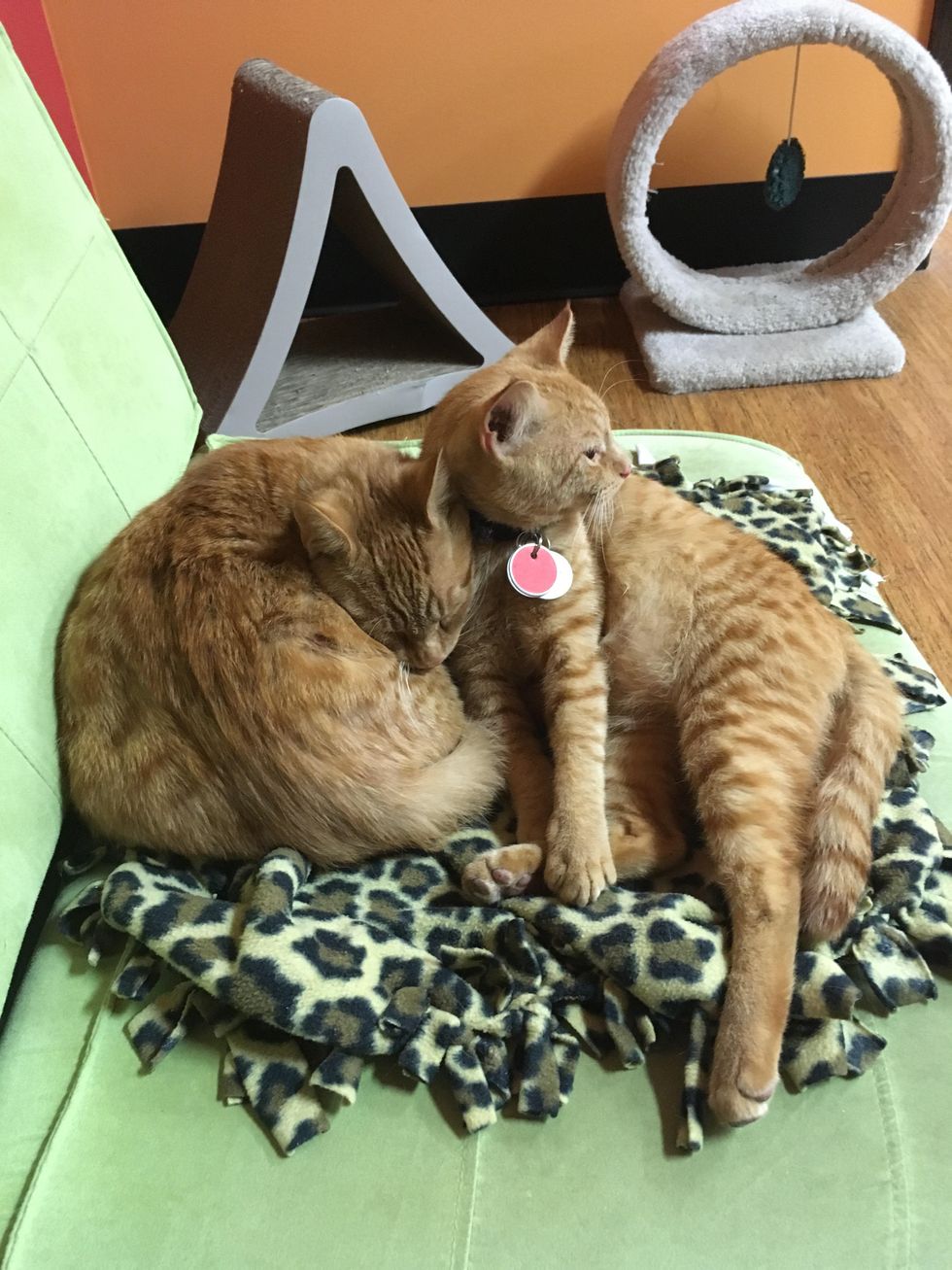 The cats have many different structures to play on (as wells as furniture). Many of the cats had they're own personalities. Some of them were cuddly like these two: