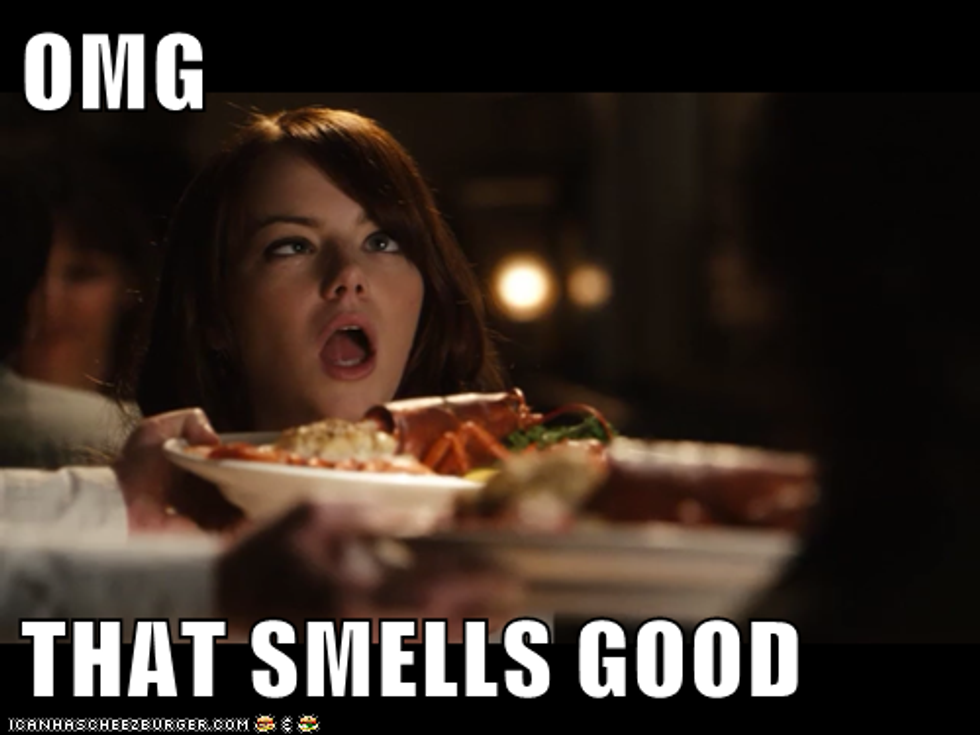 Okay, this is so weird, but I do it all the time. I smell their pizza, their burgers, random desserts. It's nice to remember through smell how something tastes and the pizza my friends get from Fountain reminds me of this skating place from my hometown.