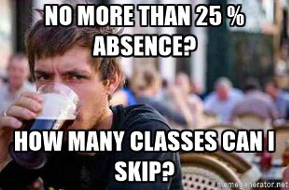 I know college is hard. I know work is hard. I know you're hungover. I know you're sick. I understand you have an assignment due for your next class but you haven't started it yet. Unlike high school, absences add up and missing one class makes you miss so much. Just remember you're paying to go to college, so don't pay just to not go. Save your allowed absences for when you really need them, not for free pancake day.