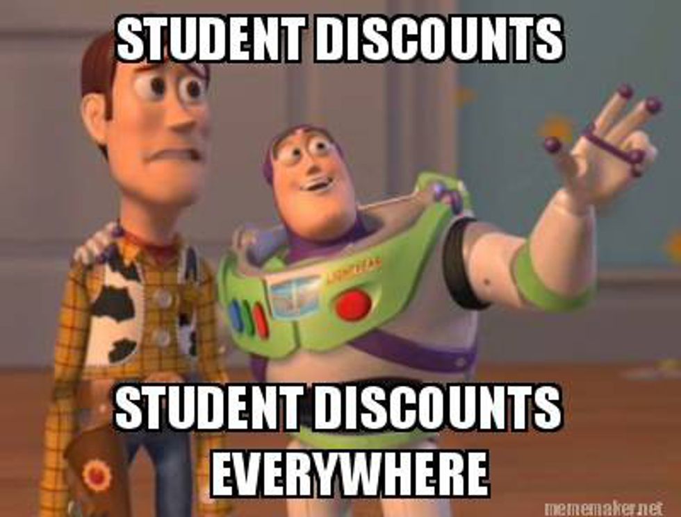 Best three words you'll hear in college other than "class is cancelled." Some fast food chains, retailers, Amazon Prime, book stores, movie theaters, etc. will offer you a student discount because they understand the struggle. Some fast food chains will even have college nights or student nights where food will be cheaper. Take advantage of all of these discounts, you only get a few years to use them.