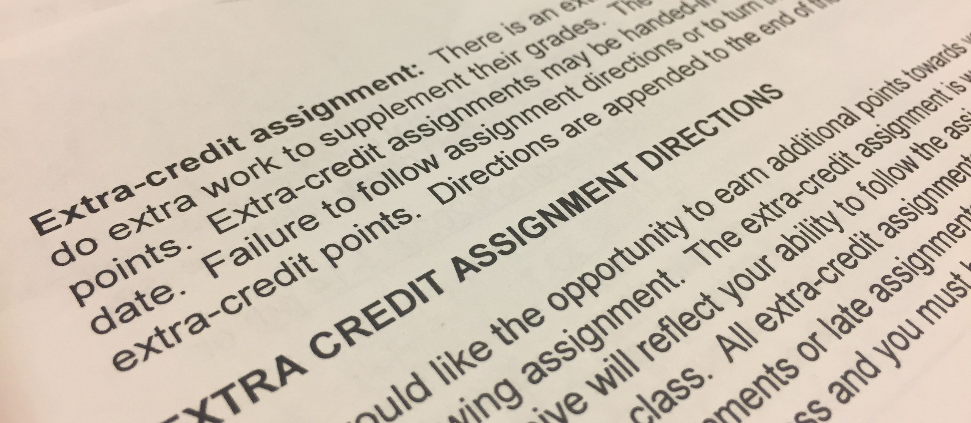 One class I took, I already knew I was getting an A when I signed up for the class. I loved the subject and could connect it to multiple other things in my life. The professor was awesome as well. So I did the extra credit to get an even higher A in the class. The professor told me I didn't need to and was even shocked I did the extra credit.
