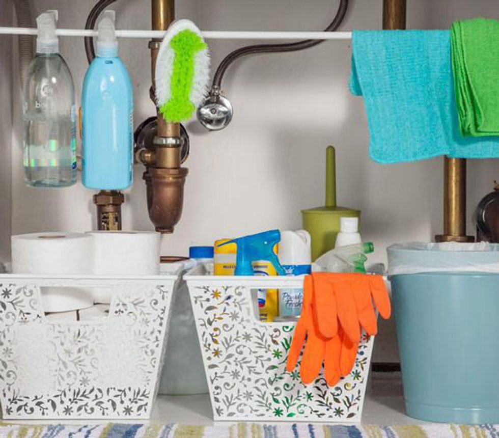 So your first apartment is not going to be the biggest or the most glamorous...and that's OK! Your first apartment is like your first car, a big step forward but it's not expected to be the best. Store stuff under your bed is a must! I also buy tension rods for my cleaning supplies, then hang them on the rod so I have more space under the sink for my trash and paper towels.