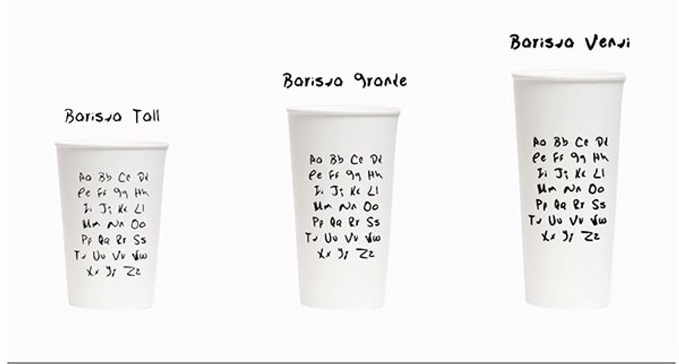 I actually am not able to enter your drink into the computer until you tell me what size you want. Yes, we go by the tall, grande, and venti size chart but by all means use small, medium and large if it makes you feel better.