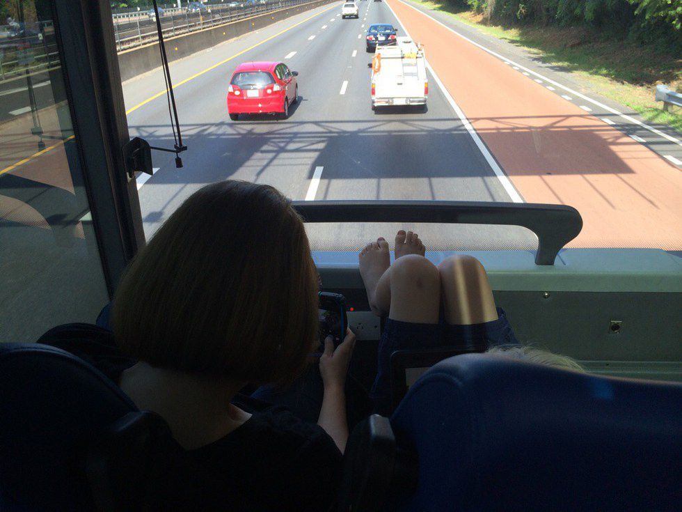 Do yourself a favor and cough up the extra one to seven dollars and reserve a seat. Especially if you're traveling with a friend. You'll know exactly where to go and sit when you get on, and the chances of having a nicer row-mate are much higher as other experienced Megabusers usually do the same. If you get the upper deck front window seat, you'll have this sweet view.