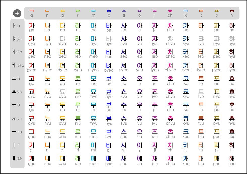 If you truly want to understand the Korean language rather than just random phrases here and there, you need to know Hangul. An easy way to learn this is by printing (or better yet, hand drawing) a Hangul chart with all the characters and the sound they make. Go over this chart every day for at least 10 minutes, and you will have it memorized before you know it, trust me. Simply continue to review the symbols every other day, and eventually, you will know them by heart.