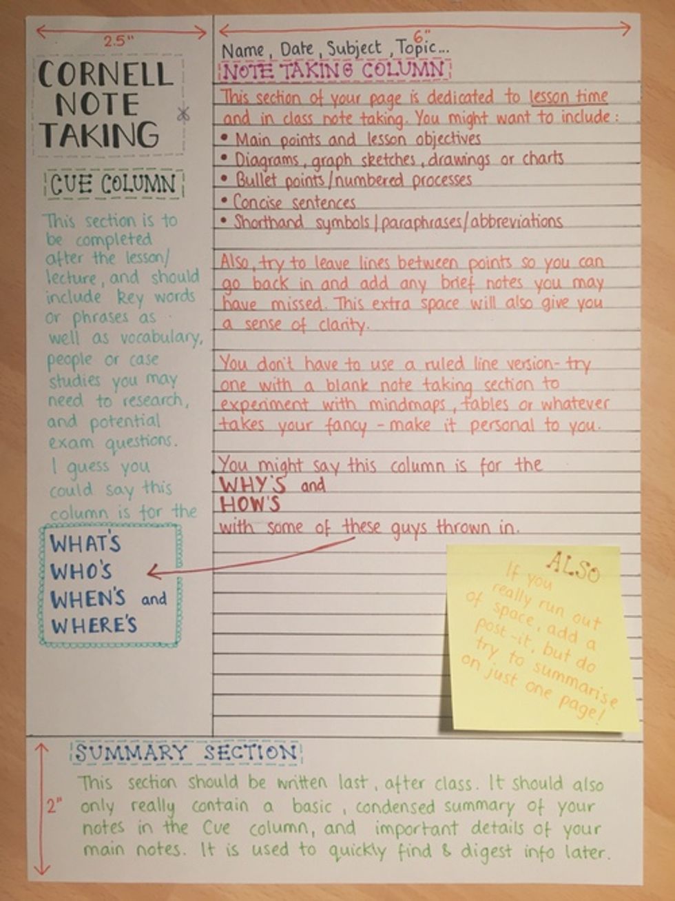 Sticky Notes are great to add little notes to your notes. Not saying that you should take notes on sticky notes, I'm just saying they're great for reminders. For example, I like to use sticky notes to remind me when the test for those set of notes is, key things the professor may have said will for sure be on the test, or for me to write down questions about something in my notes so I can ask later. They are meant to be like reminders within your notes.
