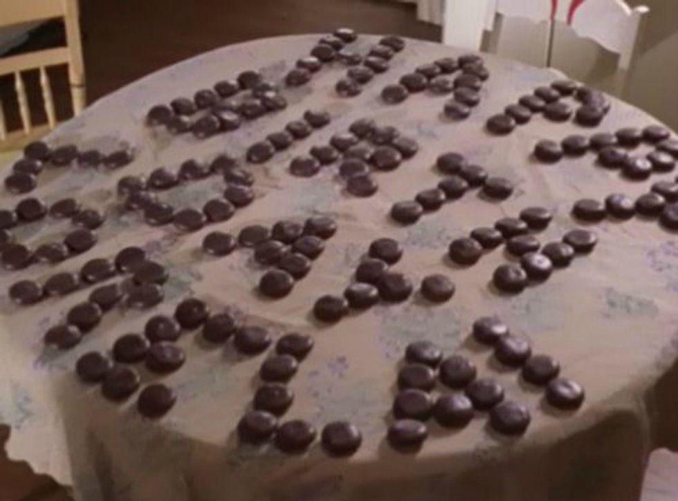 Throughout everything, this show focuses on Rory and Lorelai's bond, whether it be through watching tv, fighting, talking or eating together. In one amazing episode, Rory goes all out for Lorelai's birthday with her favorite foods, from Mallomars to pizza. You, too, could recreate an epic lettering with Mallomars, or just snack while you watch.