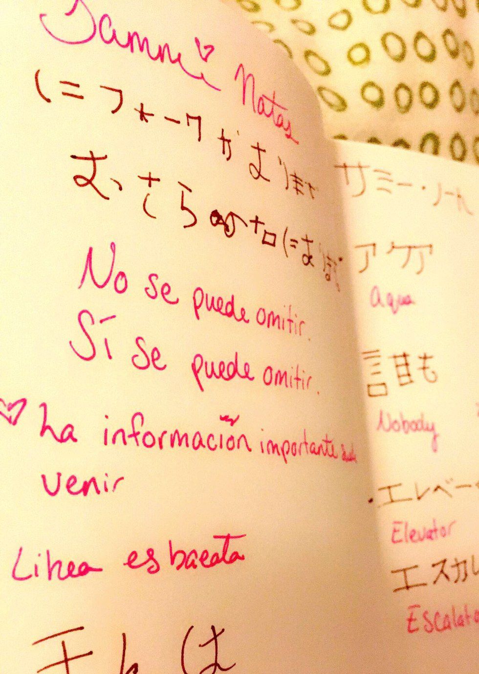 It's okay to say a word wrong, or put an accent mark in the wrong place. All of these mistakes will definitely help you to improve. Always ask someone if what you said or wrote is correct. Don't be afraid to find out if something is wrong. For me, I've had moments where I was to nervous to even ask a professor or person if what I'm saying is right. Below are some simple notes I wrote in high school of the two languages I'd try to correspond to further enhance my skill in both at the same time.