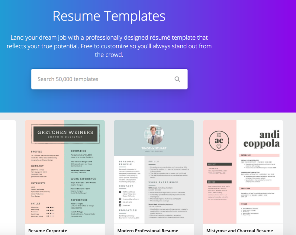 Communications majors, for example, have more creative freedom in the layout they choose, while business majors should stick to the more plain options. But don't be afraid to use Canva as a business major, there are plenty of professional layouts that will help get your resume and cover letter noticed. Canva is very easy to use even if you don't have any experience as a designer, and the online platform has tons of layouts beyond just resumes and letterheads
