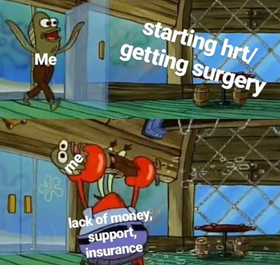 One of the scariest parts of discovering my gender for me was the looming possibility of surgery and hormones. All of the different possibilities and the associated price was overpowering for such a new queer on the block.
