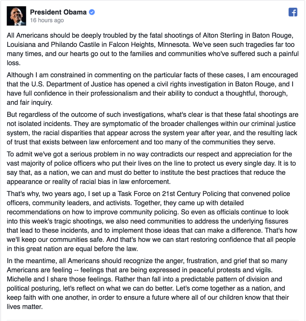 Don't tell me there is not a problem in the United States when I have to think about these things day-to-day. Don't tell me there is not a problem when people pick and choose whether to pray for Philando Castile's family or the cops in Dallas' families when they all deserve our condolences. Don't tell me saying "black lives matter" is a racist statement. Don't tell me seeking justice and peace is in some way insinuating black people want special rights. Don't counter with #AllLivesMatter because if you truly believed that, you would realize the two concepts aren't at odds with one another. Don't criticize the martyrs of the movement-- they didn't choose to die. Don't tell me to not be afraid of police encounters. Don't tell me I should defend the good cops when they refuse to condemn the bad ones.
