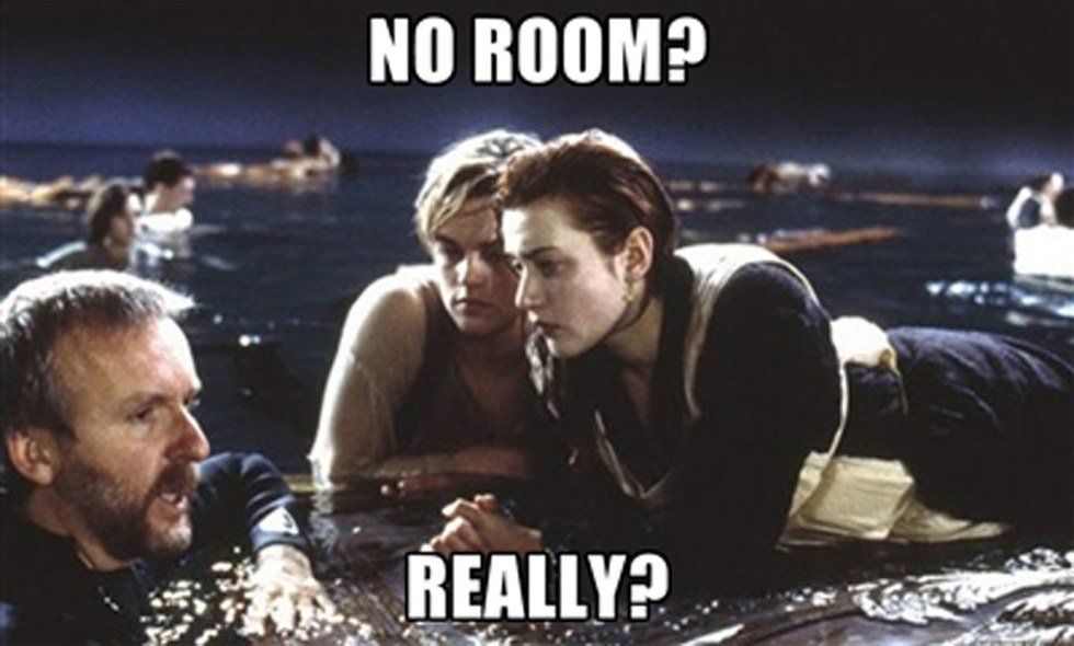 Eventually, both Rose and Jack end up in the water, duh. Rose finds a wooden board to lie on and makes herself at home while Jack freezes to death. Nice one Rose, you could have made some room, you spoiled idiot. She cries and blows a whistle until a lifeboat, which has a 50-person capacity but is only filled with 15 rich people, saves her. She takes Jack's last name and lives the life she always wanted, sans Jack, as Rose Dawson.