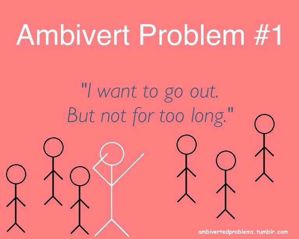 So, to all the ambiverts of the world, remember to keep your introversion and extroversion at a balance that makes you happy. Don't let your introverted anxiety keep you from doing fun things, but don't let your extroverted side make irreparable decisions!