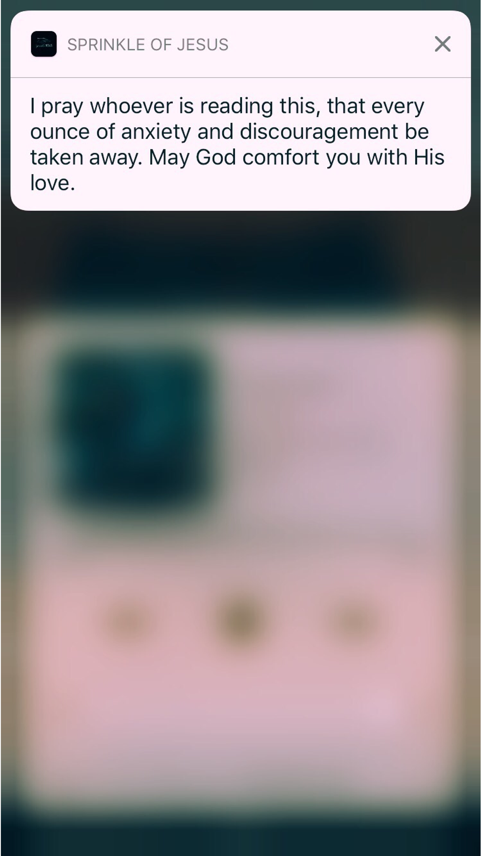 So then I started to think...am I really worthy of all these things? Did Jesus really answer these prayers or is it just a random coincidence? I barely “know” Jesus or God or who ever it is that I am talking to in my head each day. As I was overthinking, like I always do, I stopped and looked at the background on my phone. “I pray whoever is reading this, that every ounce of anxiety or discouragement be taken away. May God comfort you with His love.” I am going to keep embracing His love because so far, it is working out pretty great for me. Who knows, maybe I will even go to church.