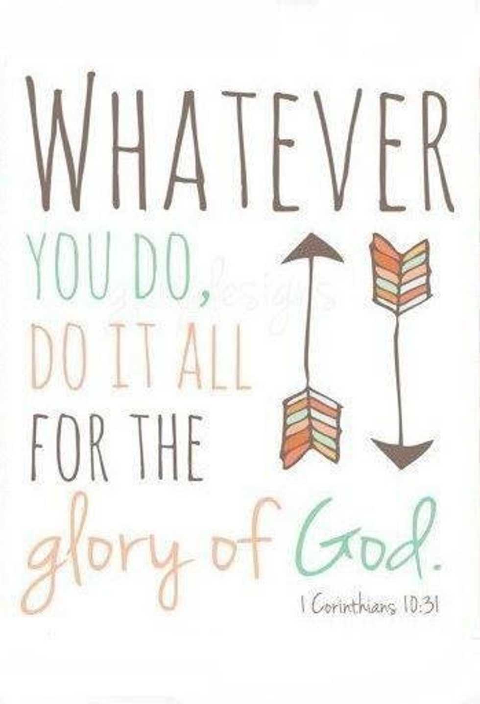 The enemy knows that if he can take our focus off of God that he can destroy our effectiveness for His Kingdom. It is so easy for us to get caught up in what the world says because it takes effort on our part to root ourselves in Christ and discern his will, but the world shouts at us. It shouts at us from our newsfeeds, in the magazines we read, the television and movies we watch, and in the people we spend our time with. We can become so consumed with the opinions of the world that we forget what our main purpose in this life is. We are here, on this Earth, for one reason and one reason only; to bring glory to the Lord. Isaiah 43:7 says, "Everyone who is called by my name, whom I created for my glory." For His glory. What if I did everything with the mindset of "for His glory?" What would my life look like? What would my parenting look like?