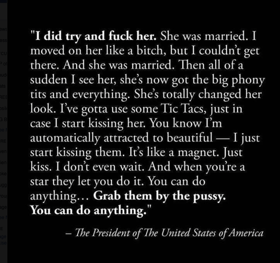To your voters who chose to overlook this because "you are a successful businessman": you clearly don't understand the slap in the face you have given to victims of sexual assault.