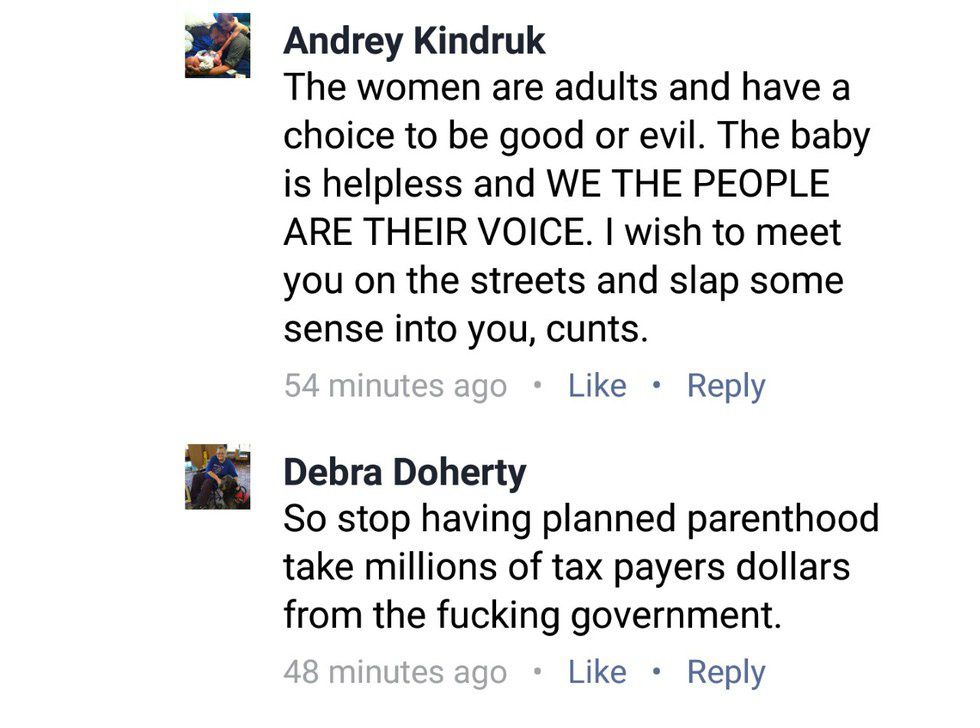 Another story I saw was shared onto my Facebook timeline (you can read it here). It was a beautiful, young couple that discovered their baby girl had tumors growing on her lungs, brain and heart. This couple knew their baby would not make it to term, and they decided to make a decision as a family to end the pregnancy. They were told by multiple doctors that the baby would not make it to full term, but people are still giving this brave couple insane amounts of backlash. Backlash that includes Trump’s incorrect comments. Ignorant people are using his ignorant comments as insults to hurt already broken families that are trying to recover from tragedy. Many women have followed suit, desiring to tell their stories, despite the backlash. Some of the backlash these women have been experiencing can be seen below, but be warned there are profanities.