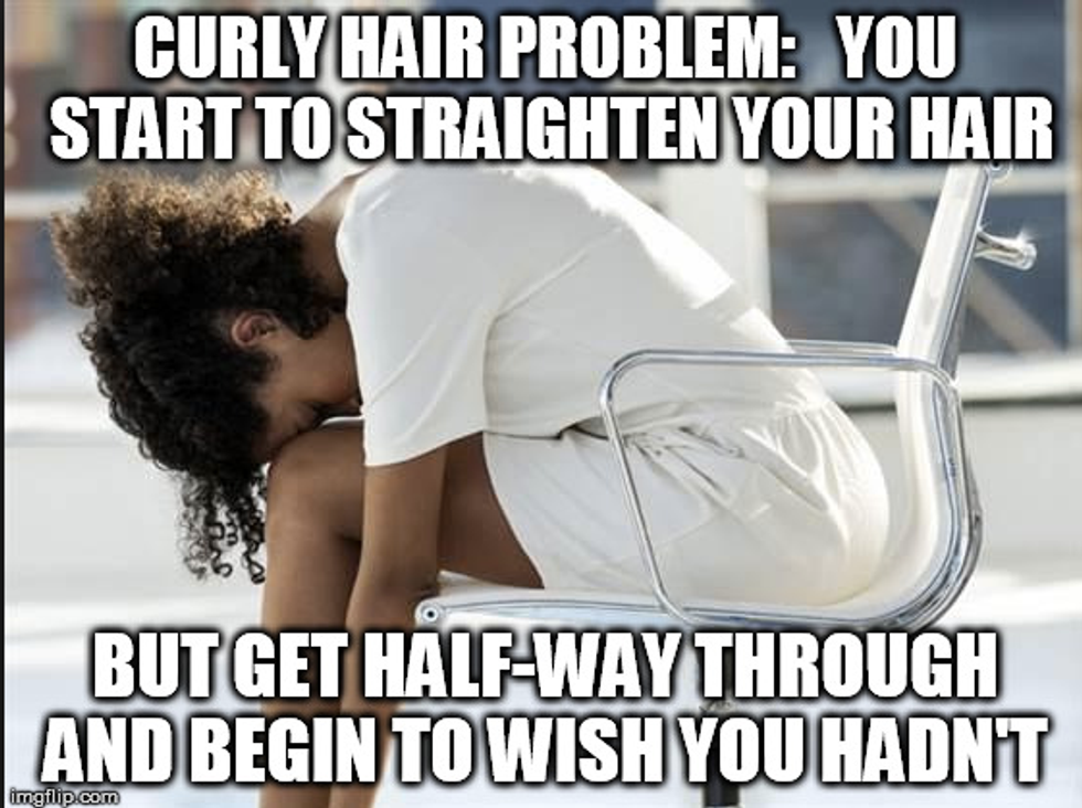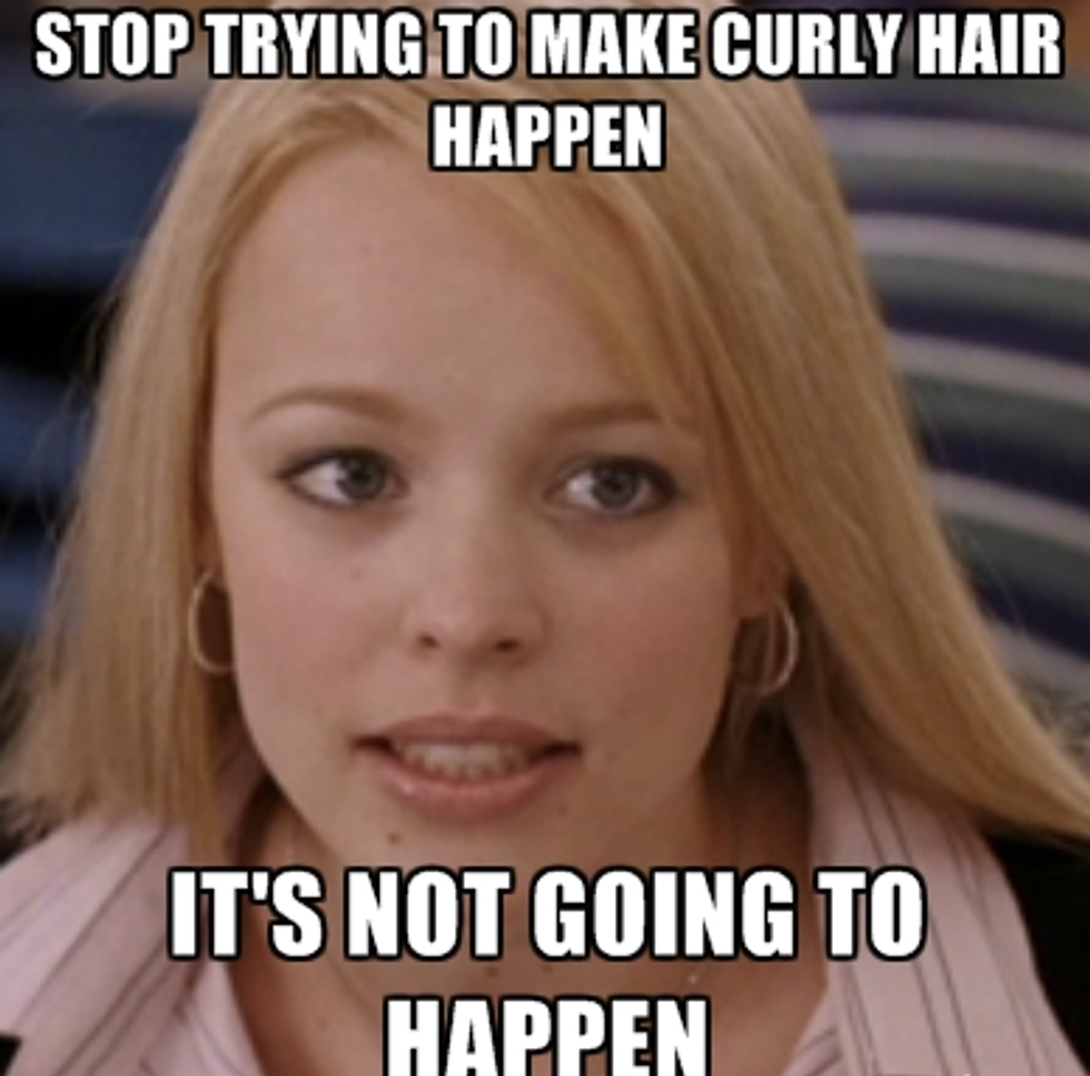 To all you girls with curly hair: I feel your pain! The way to describe our crazy curls is most simply: a struggle. We will never know what it is like to wake up in the morning and be able to walk out the door. We will never know the satisfaction of running our fingers through our hair. What we will know is what is like to get complimented on our hair and then listen to a long story about how they wished they had our hair. Don't get me wrong, I think curls are beautiful, but sometime we need a break. This is for all you girls that know the continued struggle of seriously curly hair.