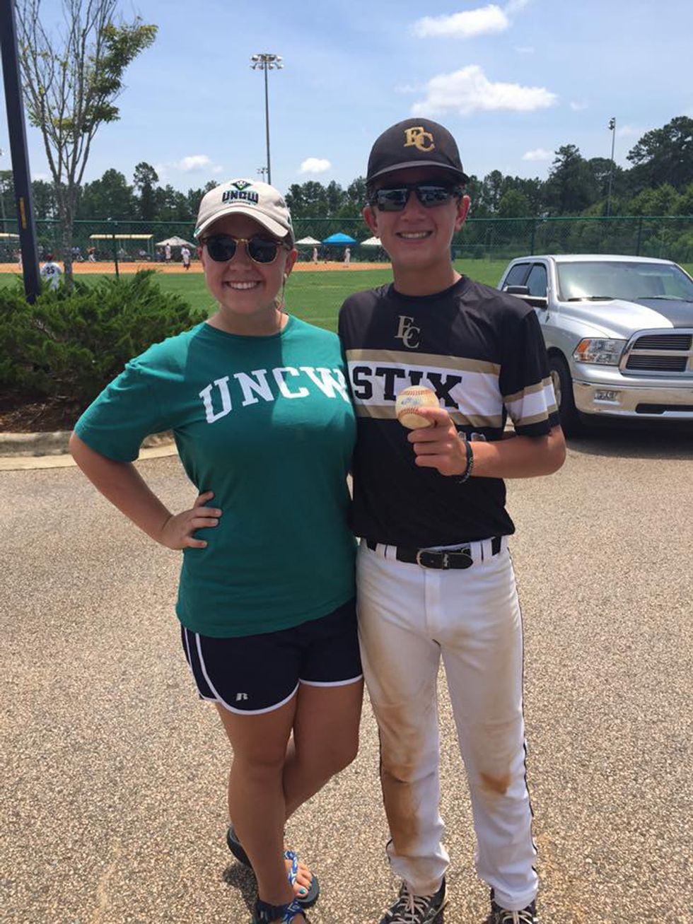Thanks you for sharing the love of sports with me. I know if I ever needed someone to go pitch to me, hit with me, or go to a game with me, you'll always be down. Even though our teams are rivals (Go Heels), I wouldn't want to watch a rival game with anyone else. Thank you for especially loving baseball as much as I do. I wouldn't want to watch anyone else play baseball every weekend. There was nothing like the feeling of watching you pitch at the state championship last summer. Every time you step on the mound, a rush fills my body. I cannot bear to sit down because I am so nervous. You are an extremely excellent pitcher and I'm not just saying that because I'm your sister. I am so proud of you and all of your accomplishments over the years. You're an incredible athlete and I have enjoyed watching you grow as an athlete since you were four years old. You are so hardworking and dedicated to every sport you want to try. Your baseball career has taken our family on countless trips, from Myrtle Beach to Cooperstown (twice).
