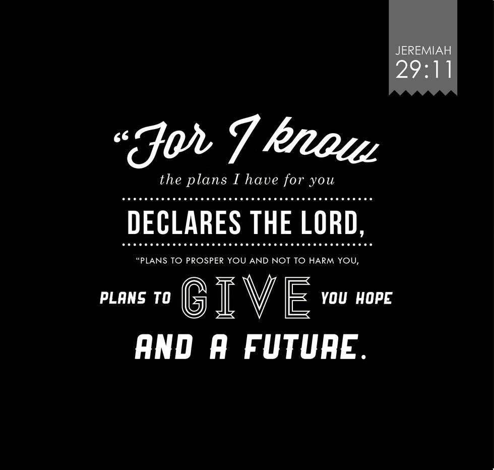 "For I know the plans I have for you,” declares the Lord, “plans to prosper you and not to harm you, plans to give you hope and a future." - Jeremiah 29:11