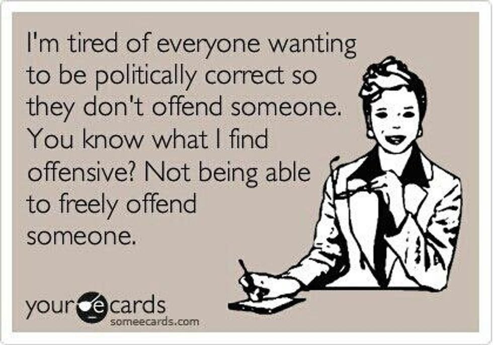 And this is not an attack because that would be hypocritical. Many, many people who are aware of social issues now were not always aware. Many of these people at one point probably made or laughed at insensitive jokes, but have become aware of oppression and the social implications of certain “jokes,” therefore no longer find them funny. It’s so irritating for someone to hear, “oh you used to have a sense of humor,” just because they now don’t find your casual racism, sexism, misogyny, or transphobia acceptable. It’s irritating for someone who politely tries to correct or educate you on something to then hear, “Oh god they're one of those people” or “here they go again about to get all politically correct.” Instead, try listening when someone calls you out on something wrong you’re doing instead of just writing them off as oversensitive so you can continue being comfortable with perpetuating problematic ideals.