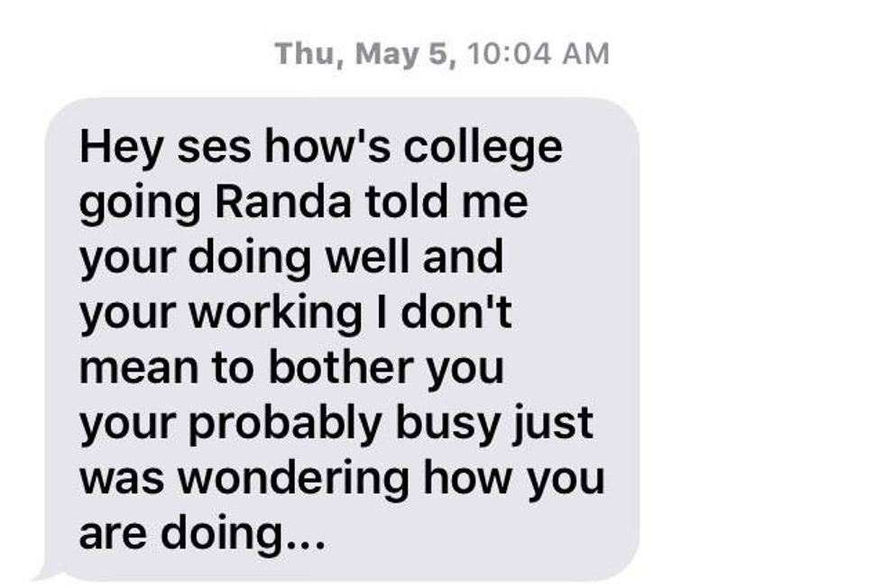 I received this text from you a few months ago out of the blue. I had different emotions running through my mind as I read this text in my head and then again out loud especially when you said, "I don't mean to bother you." Since when is a "dad" who's wondering how his daughter has been a bother. If that is what bothering means, I wish you would have bothered me these past twenty years. I wish you would have bothered me every day, all day. To add to your text, yes I was doing very well. I just got out of my first year of college a few weeks before then and I was working every day. Me, busy? Always. I have never been too busy to want to have a real life conversation with you, besides the ones I would make up in my head for whenever you decided to contact me. You have no idea how many times I would drive through the city where you live in hopes that maybe I would see your face but if I walked passed you on the street I wouldn't even know it was you.