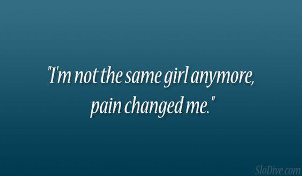 Without the hurt and the pain, I would have never changed into the strong girl I am now. The girl who knows what she is capable of and what she deserves. The girl who doesn't have to worry about what she's doing so she doesn't get yelled at or start a fight. I avoided the fights at all costs until the end when I couldn't take it anymore.