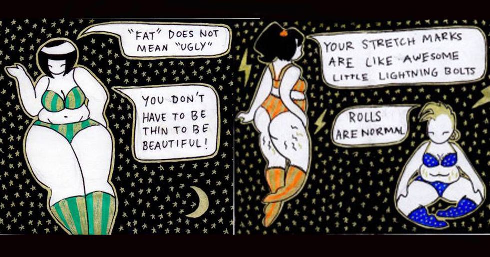 However, I am not just advocating for those who struggle with their bigger size - many, many females also struggle while already being the "ideal" size. I know, personally as well, females that still believe they are too "fat," even though they are already under 90 pounds. These women struggle with just as much hate, even more self-hate, because many times, it is done privately (just as it is with thicker women). It is incredibly unfortunate that any woman feels the need to hate their body because they are uncomfortable with the one they have been given, but I stand by the notion of loving yourself. Love yourself until you can't anymore, because despite the marks, or lack of, you are still beautiful.