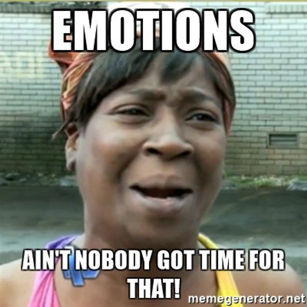 There are a few downsides to never showing emotion though. Like when something really amazing happens and everyone is ecstatic and crying and you're just like... "yay". It's hard to get excited let alone show emotions when you are excited. Nothing is worse than having to act like you're excited for something when honestly you could care less. Being low key emotionless makes you become a really good actor because you constantly have to act like you care.