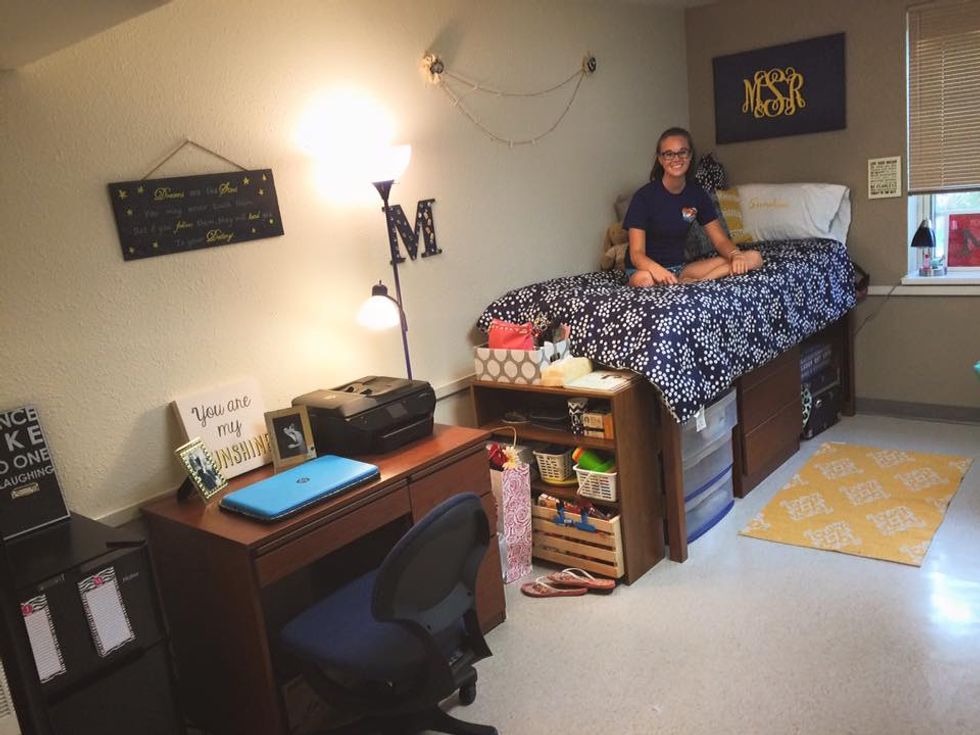 In the bathroom, there were bloodstains from where my roommate lost her toenail one night and we laughed about it for two days straight. In the windowsill that faces Moffett Quad, there were always flowers and decorative items. On the walls, there were monograms, Lilly Pulitzer inspired art, pictures of old friends and high school memories, and homemade crafts. On the floor, there were stains from sticky and sugar-filled drinks from Friday nights and sand from a "stress ball" made at our RA's program that same night. On the beds, there were tears from heartbreaks and sad movies, there were food crumbs and cereal milk spills, and there wrinkled covers from where our friends had slid off of our bed to leave.