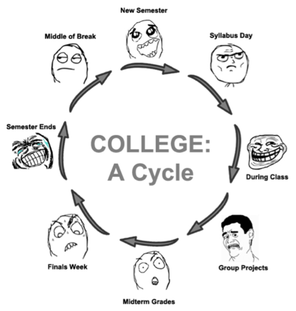 One last thing. . When you're feeling overwhelmed. Don't stress yourself. Take a step back and reevaluate what's going on. If you have to spend time alone just listening to music, DO THAT. If you have friends or professors you can confide in, SPEAK TO THEM. In college your voice matters and the last thing you want to feel is alone in a place away from what you consider home. It may not make sense now but once you take initiation and push yourself to be great, your confidence level will go up. Besides, finals aren't until another month in a half or so. You have more than enough time to get things right. As humans we are our biggest critics, so use the little motivation you have now and run with it. Another important thing to keep in mind is to surround yourself around people who want to see you do good. Positivity is contagious. You become like those you hang out with daily. If there's no great progress then reevaluate your friend group but NEVER EVER GIVE UP!!!!