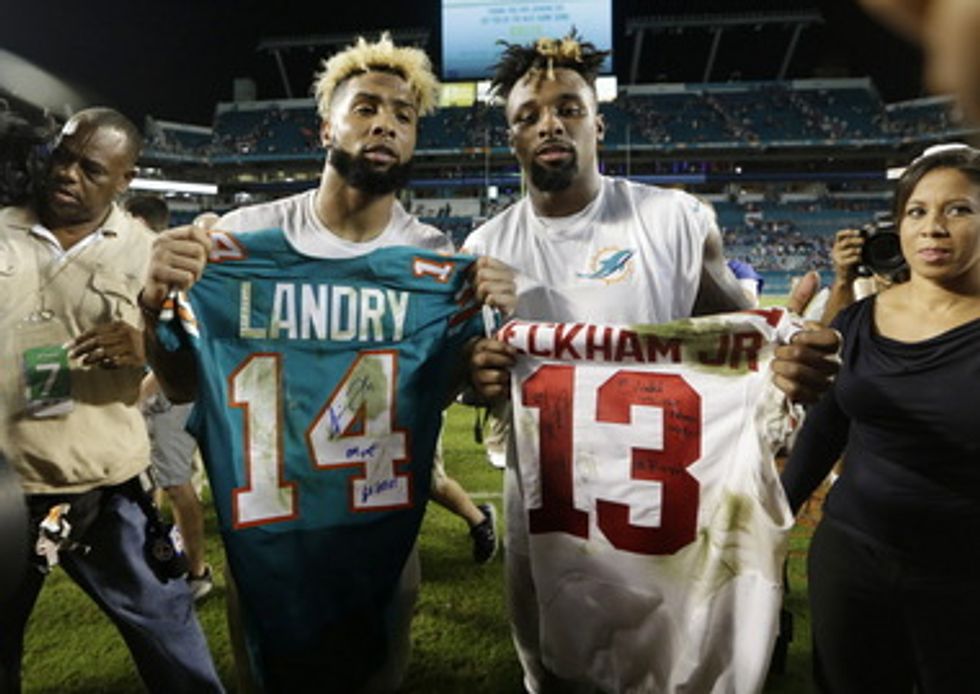 But--get this--Landry isn't strolling too far behind his beloved teammate with his four touchdowns and 94 grabs for 1,136 passing yards with an even better catcher rating of 71.8 percent.