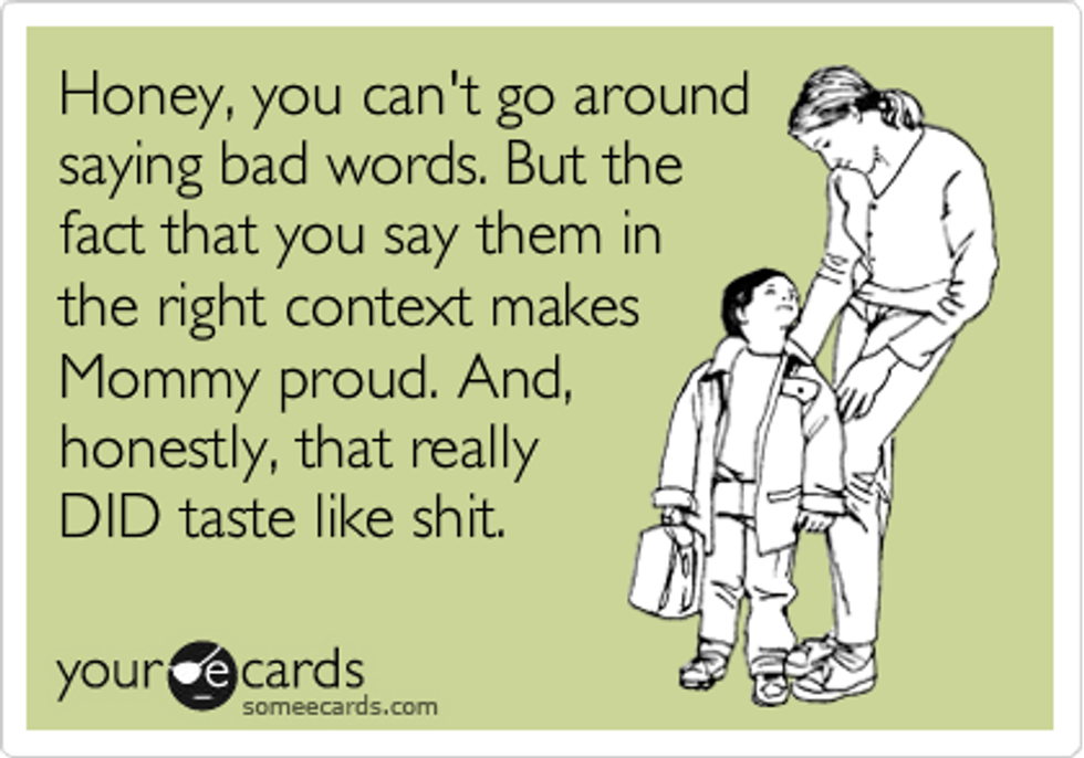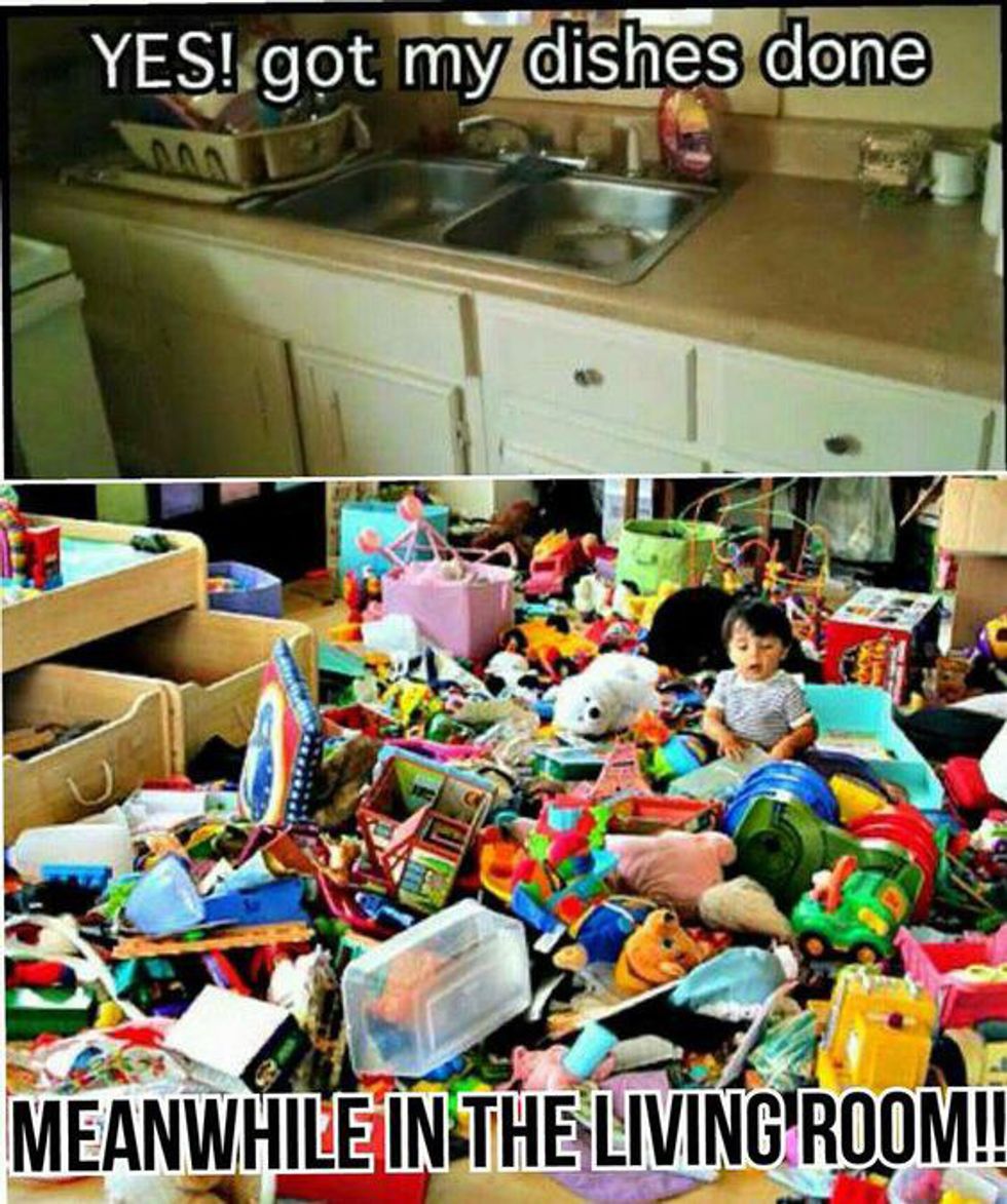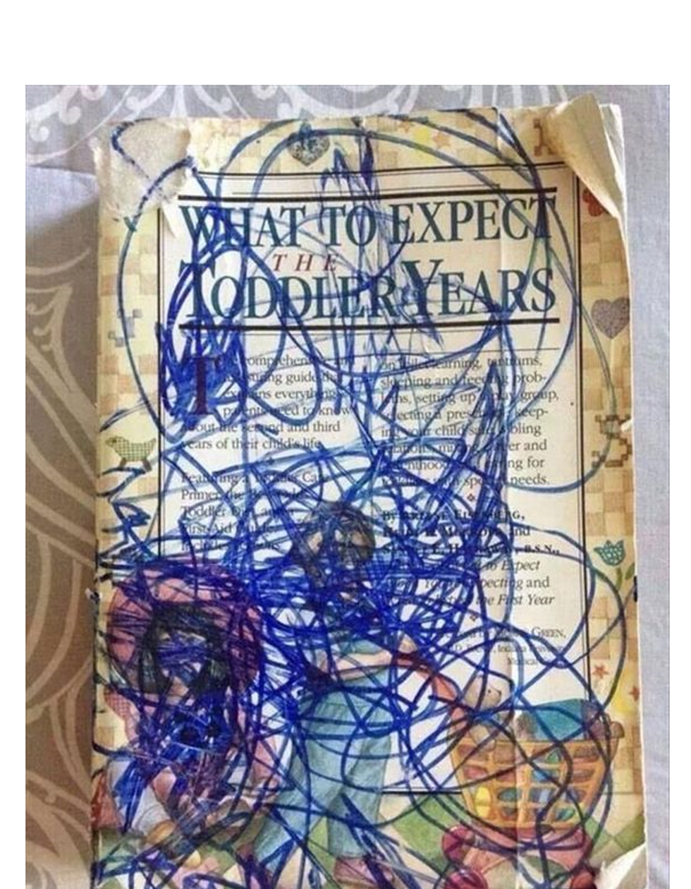 I currently have Sharpie on the walls of my dining room, pizza roll filling crusted into the carpet and I realized a few days ago that one of my little monsters used the toilet bowl cleaning brush as an 'effin plunger, then put it back in the holder to ferment. My minivan looks like Toys-R-Us barfed in the back seat. Hell hath no fury like a toddler who catches you throwing something away, even though they have broken more than half of their crap toys.