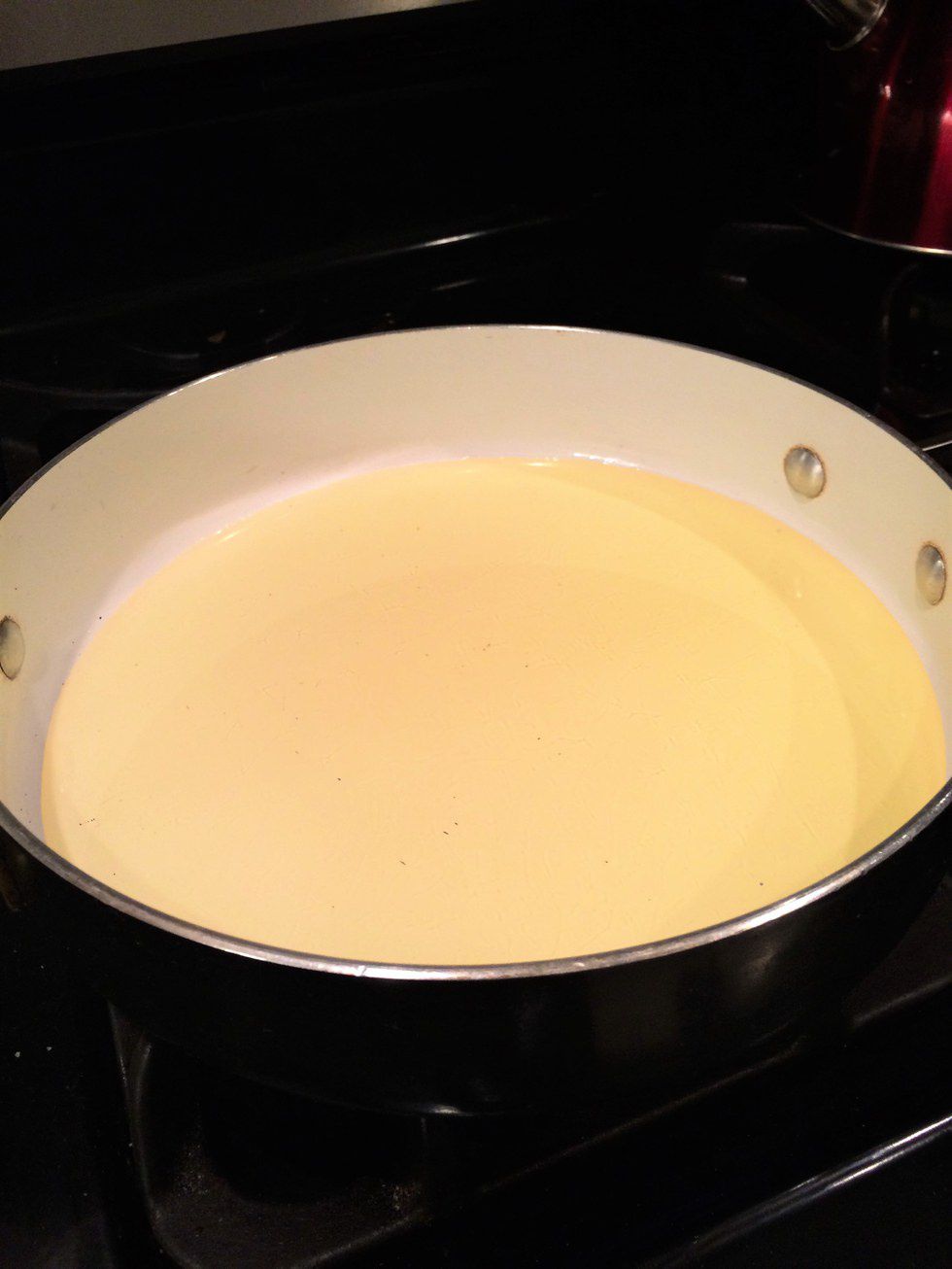 9. In a sauté pan, pour about 1/4 of an inch of vegetable oil into the pan and heat over medium-high.