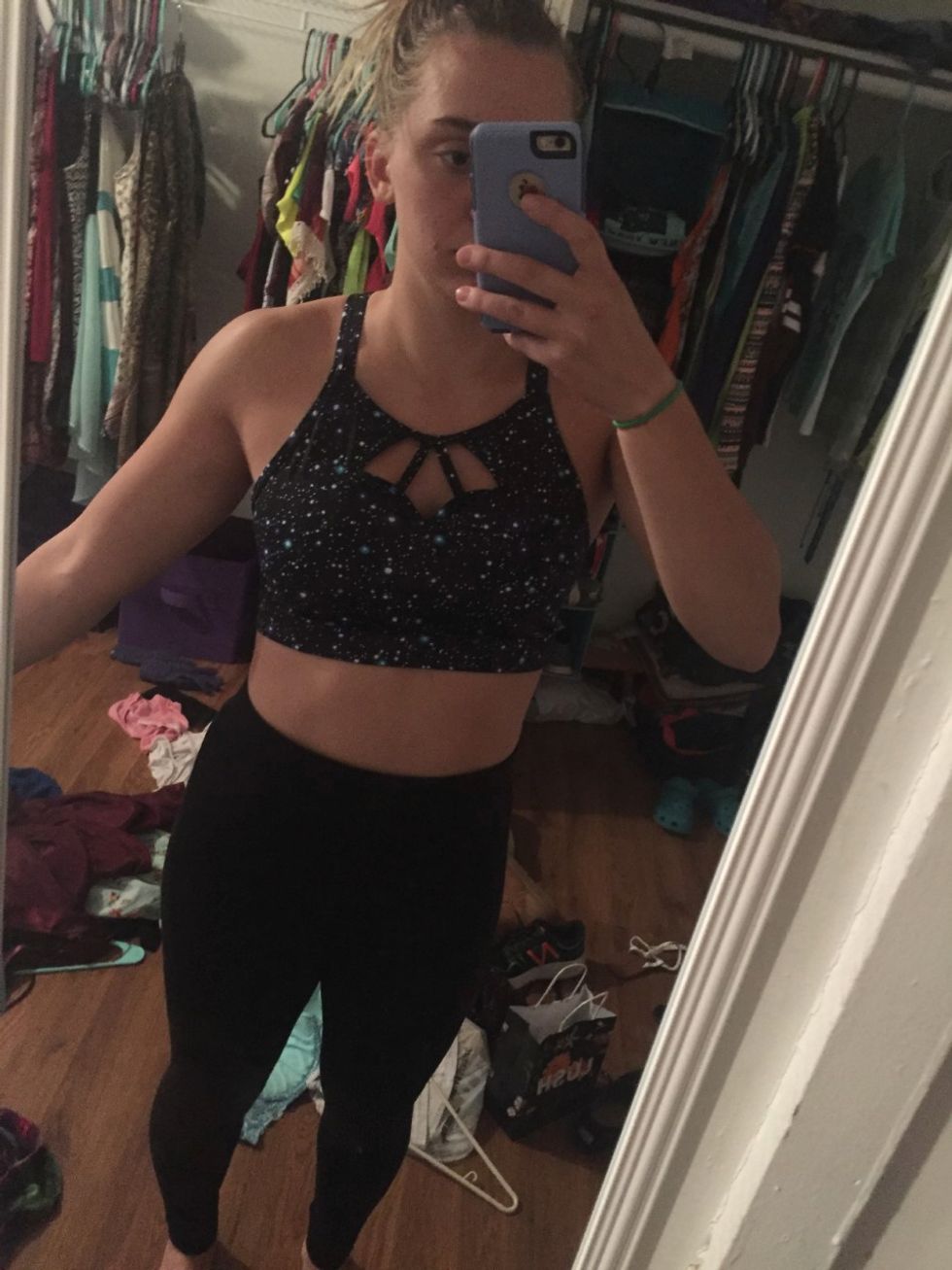 Lastly, I'll include a picture of what I was wearing that day when I was asked to change, to put this all in perspective. I think once you view the picture of me wearing running leggings and a running sports bra, you'll find it very appropriate attire for running.