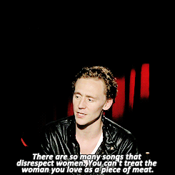 "This generation has lost the true meaning of romance. There are so many songs that disrespect women. You can't treat the woman you love as a piece of meat. You should treat your love like a princess. Give her love songs, something with real meaning. Maybe I'm old fashioned but to respect the woman you love should be a priority." - Tom Hiddleston. This is a very refreshing viewpoint in current culture. We love a man who treats women right.